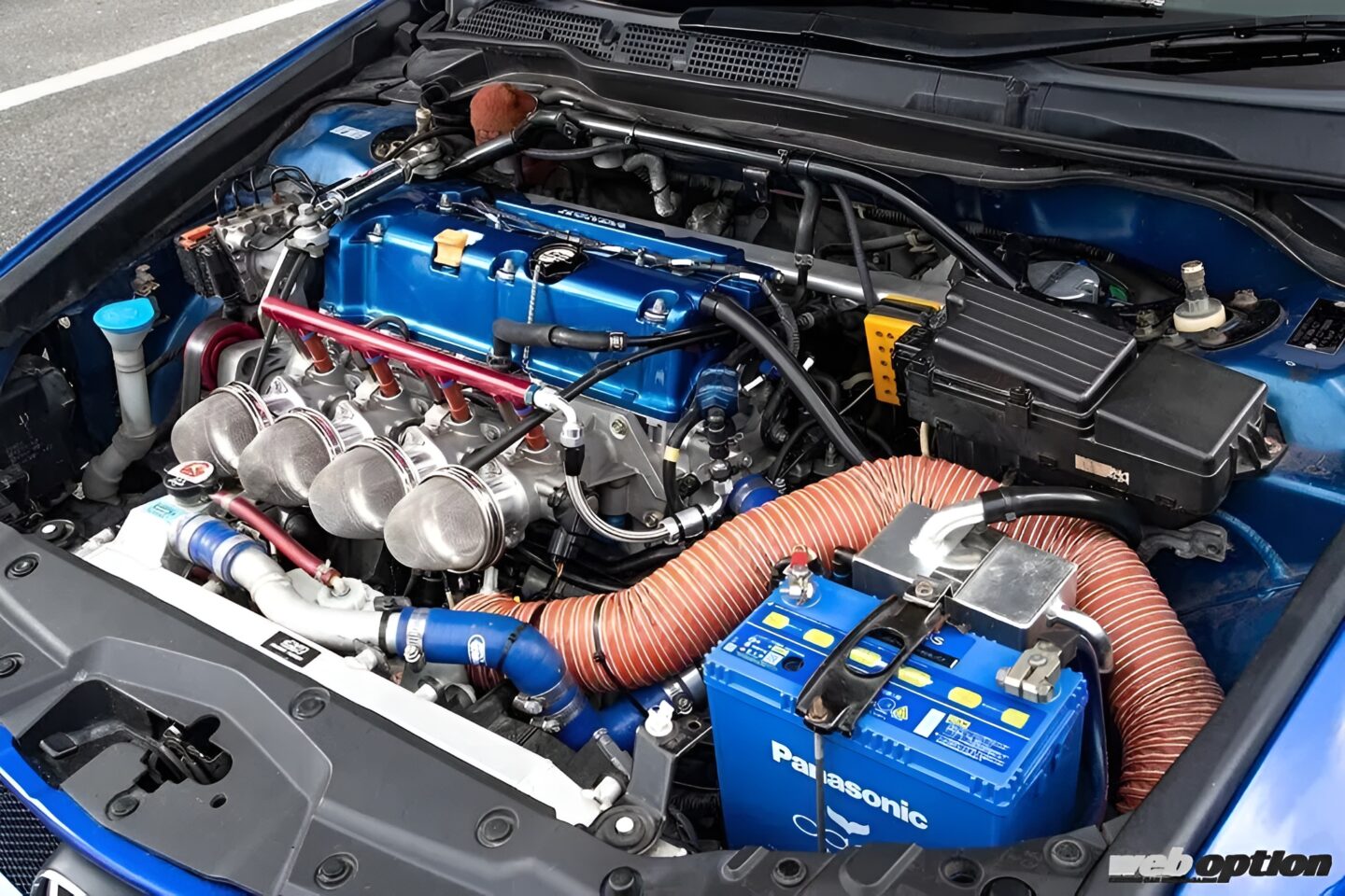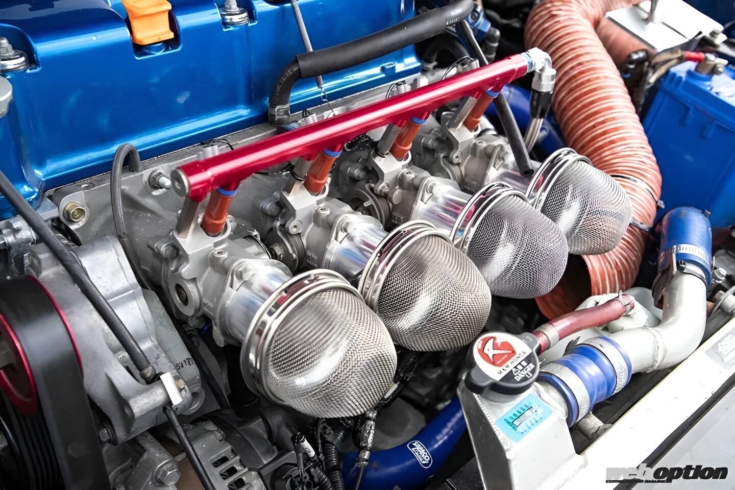 インテークには、戸田レーシングのスポーツインジェクションキットを装着してレスポンスを向上。インジェクターはデンソー製の550ccマルチホール式に変更済みだ。
