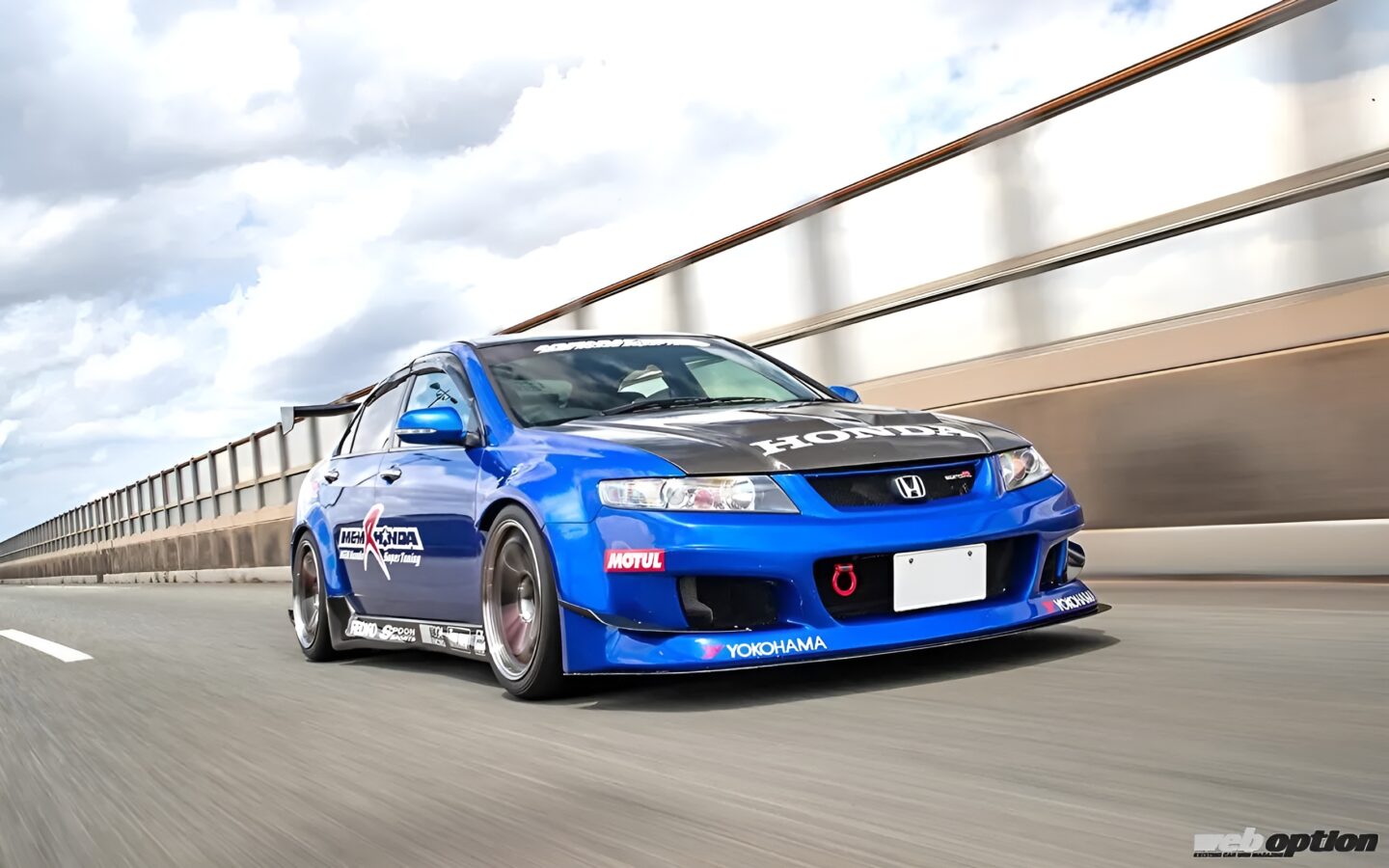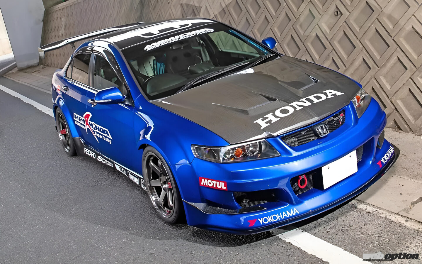 エクステリアを覆うのは、この車両のためにワンオフで製作されたM&Mオリジナルのワイドボディキット。前後ともに片側70mmワイドを実現している。カーボン製のGTウイング、ボンネット、トランクも全てM&Mホンダのオリジナル製品だ。