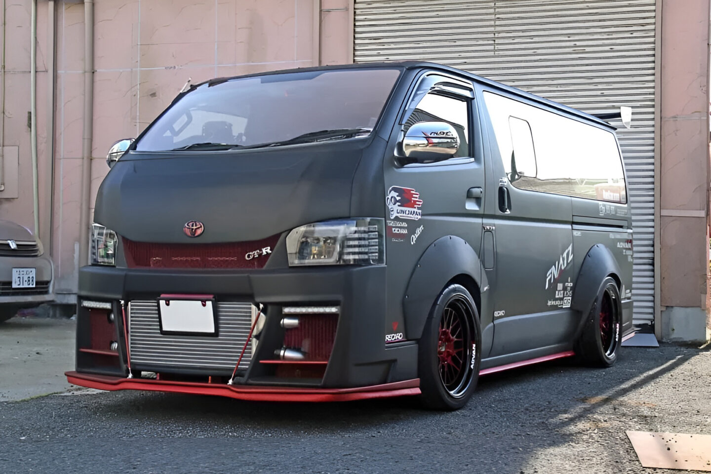 東京オートサロンにも展示されて話題を呼んだ魔改造ハイエース。R35GT-Rのパワーユニット、VR38DETTを換装したビックリドッキリメカだ。最近、こういう遊び心でやっちゃうようなチューニングカーが少ないから、その存在だけでも僕はうれしいね。