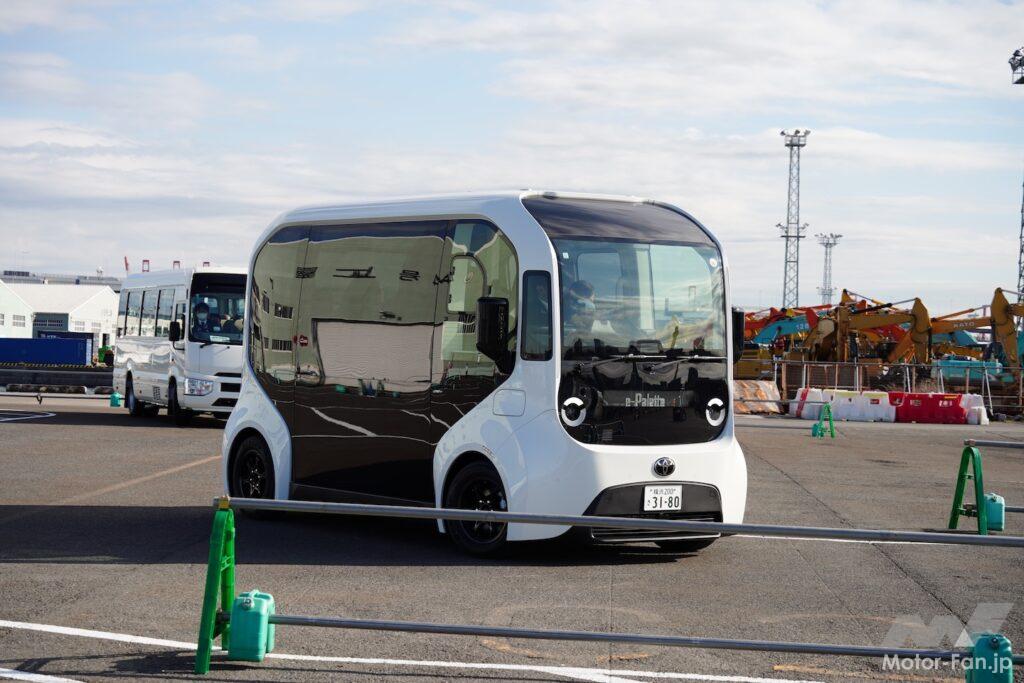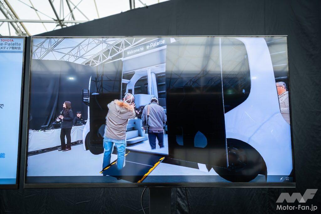 今回の取材会に持ち込まれた、ティアフォー社によるe-Palette用の自動運転システムも一例ということである。同社担当者によると、2027年度にはレベル4に準拠した自動運転システムの市場導入を目指しているという。