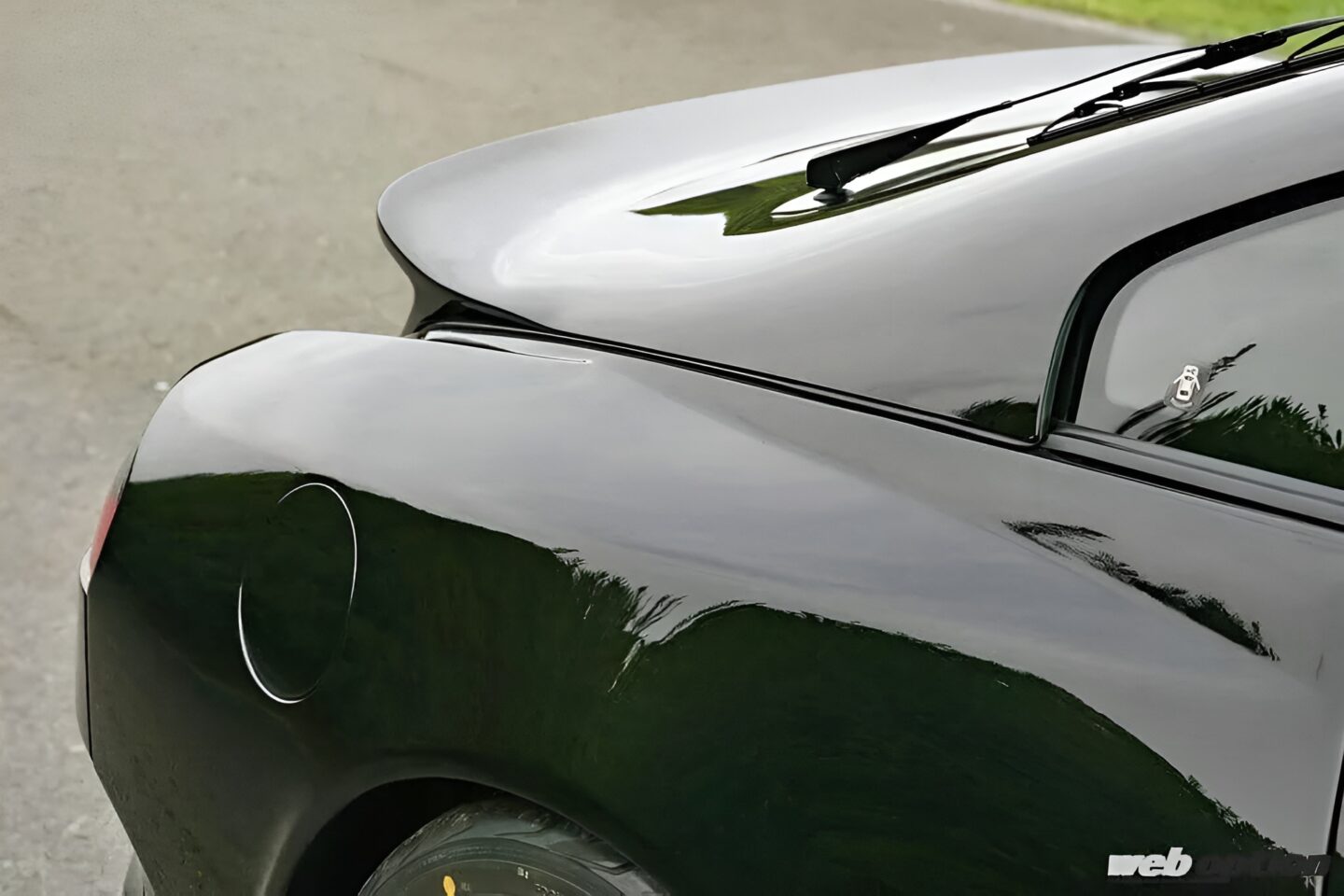 ボリューム感溢れる前後フェンダーはフロントが約45mm、リヤが約75mmのワイド仕様だ。フェンダーラインの頂点をどこに設定するかなど、ジックリと検討することによってバランスの良いフォルムを作り上げている。
