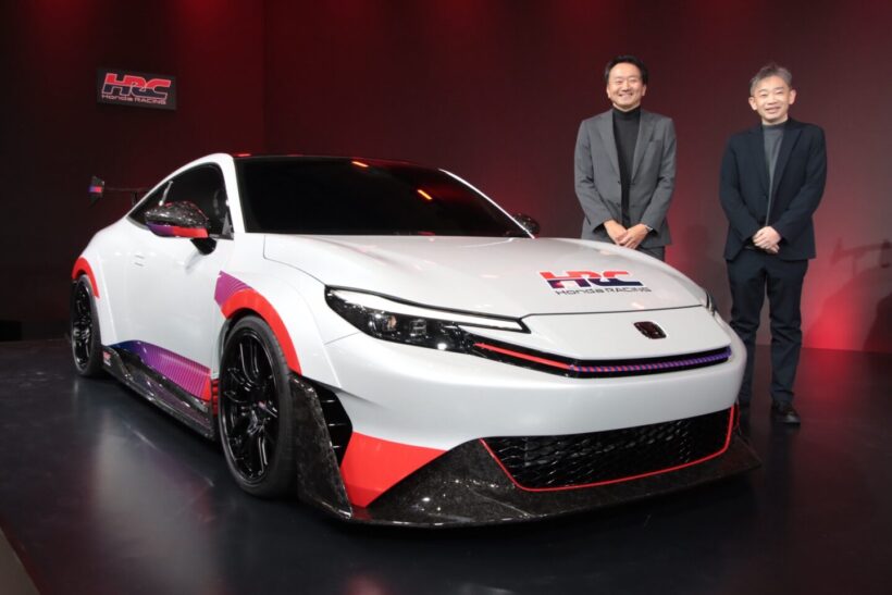 新型 ホンダ「プレリュードHRCコンセプト」誕生の裏側!“実効空力”とレース技術はどう融合したのか?【写真・7枚目】 ホンダ・プレリュードHRCコンセプトとホンダアクセスの後藤純さん(左)、湯沢峰司さん(右) この画像の記事を読む
