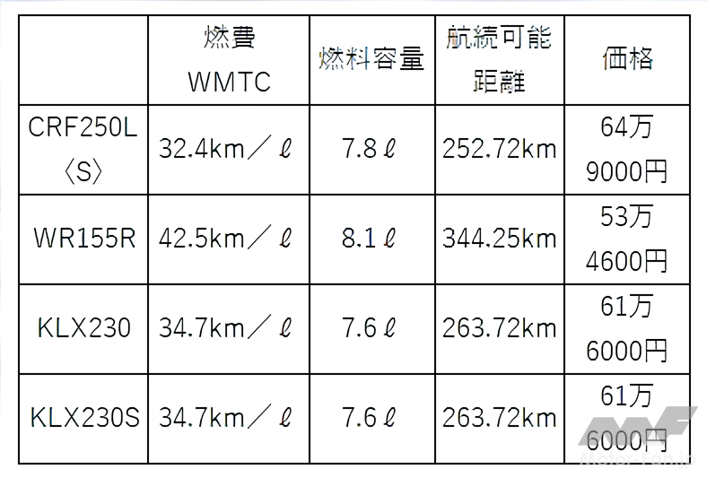 そして現在はWR155Rを含めた4機種の中から(KLX250Sの兄弟車であるシェルパを含めると5機種)、自分にとってのベストがどれなのかで大いに悩んでいる。以下の文章では、その理由を解説したい。