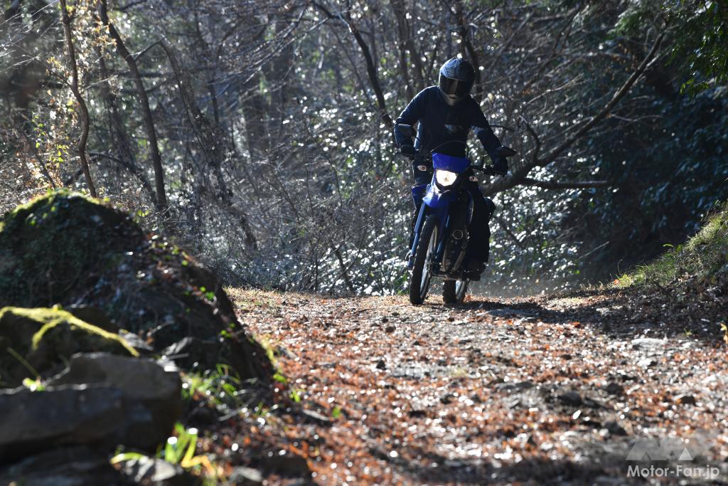 WR250Rとの共通点ではないものの、悪路走破性に関しては、真っすぐ進むことが困難なガレ場で自分の頭に描いたラインを走りやすいことも、このバイクの魅力である。