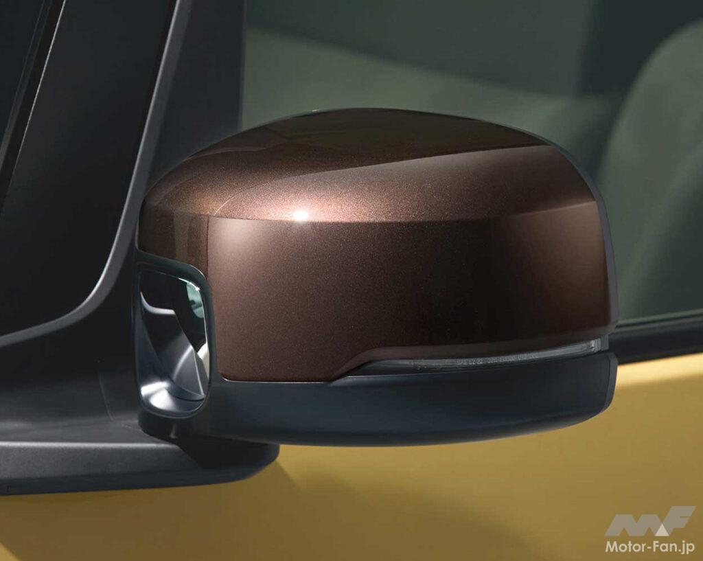 2025年4月の改良で、N-BOXファッションスタイルに、ルーフとドアミラーへプレミアムディープモカ・パールを配色した2トーンカラーを追加設定した。
