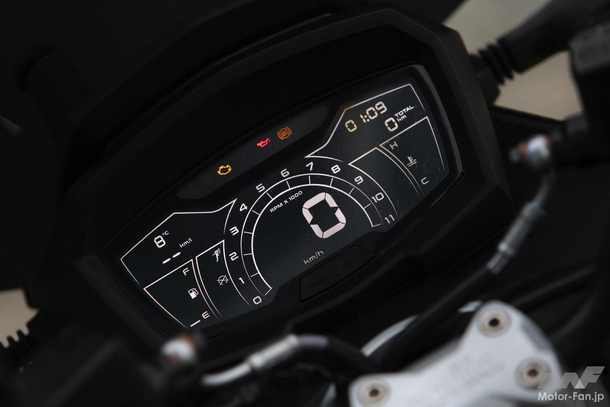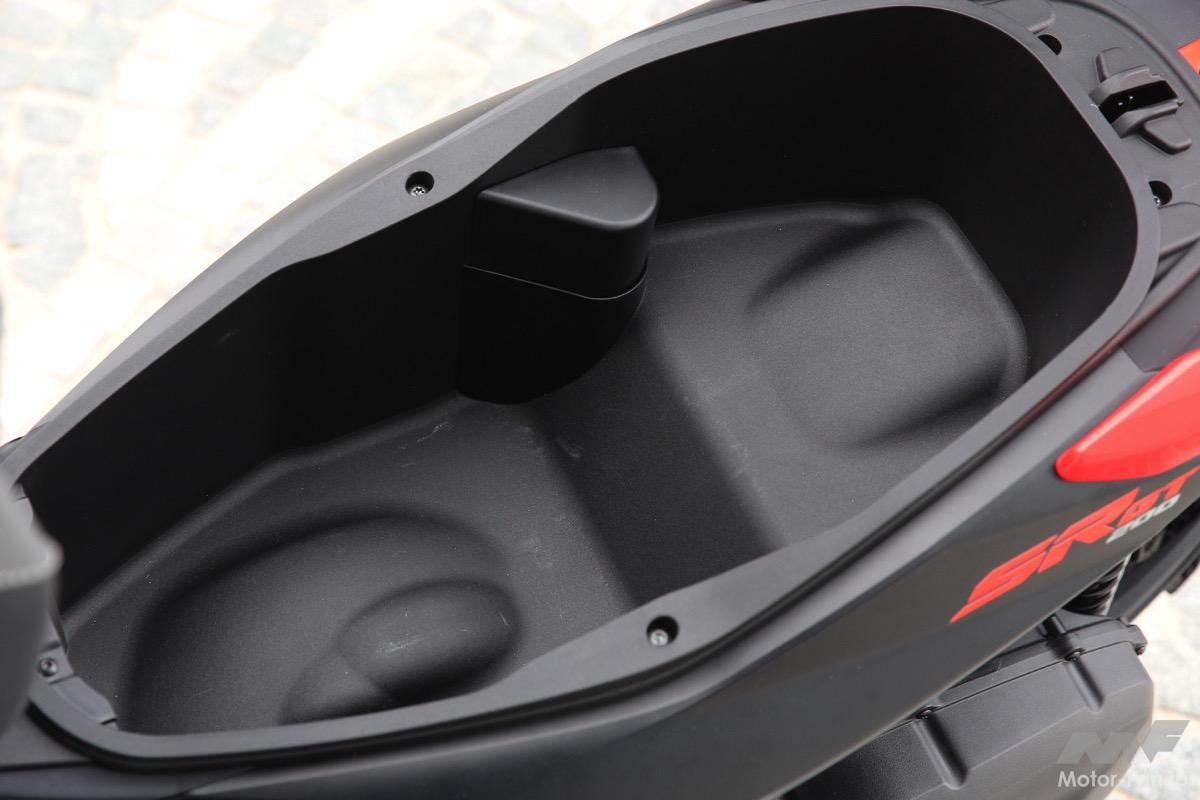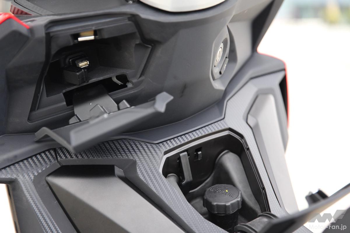 ロングトラベルのサスペンションと高い地上高により、街中の段差や荒れた路面でも快適な走行が可能。シート下には約25リットルの収納スペースを確保し、レッグシールド内側にはスマートフォンを収納できるスペースとUSB電源ポートを内蔵している。