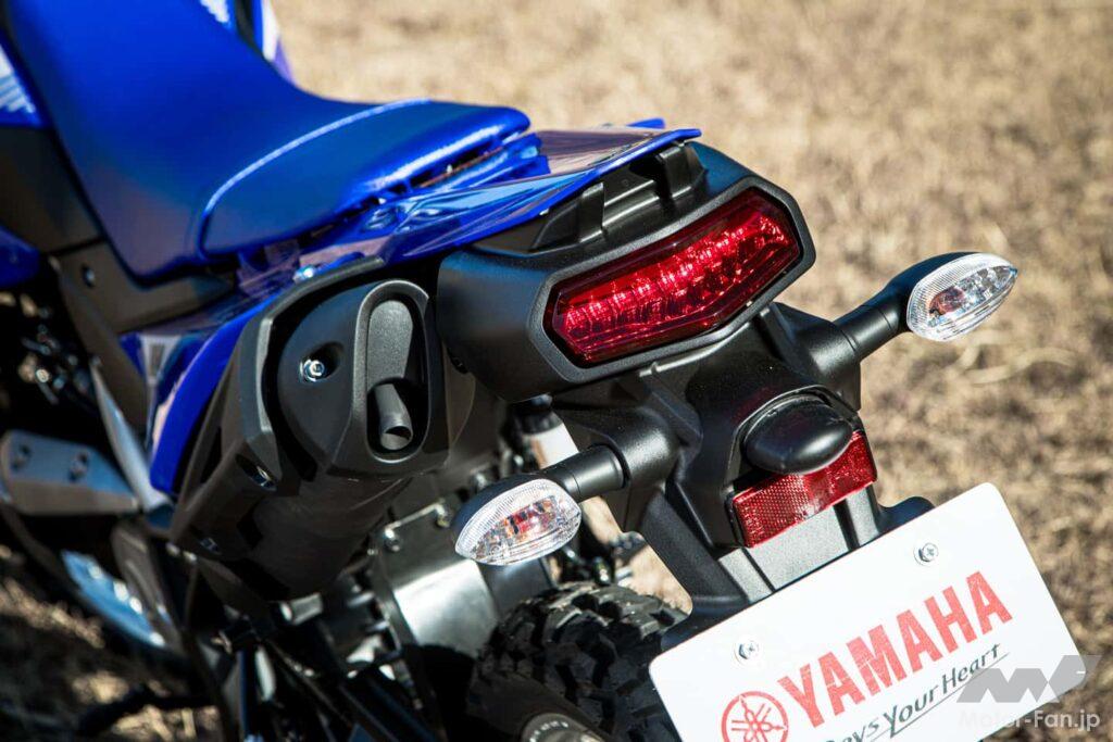 125クラスでここまで“顔の個性”を強く押し出してきたのはかなり珍しく、WR125Rが単なる入門モデルではないことを一瞬で伝えてくるポイントでもある。夜に見るとその迫力は倍増。後ろから見ても一目でWRって分かるデザインなのだ。