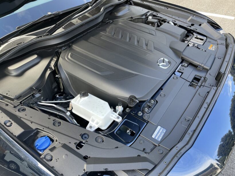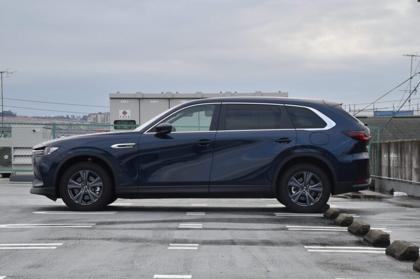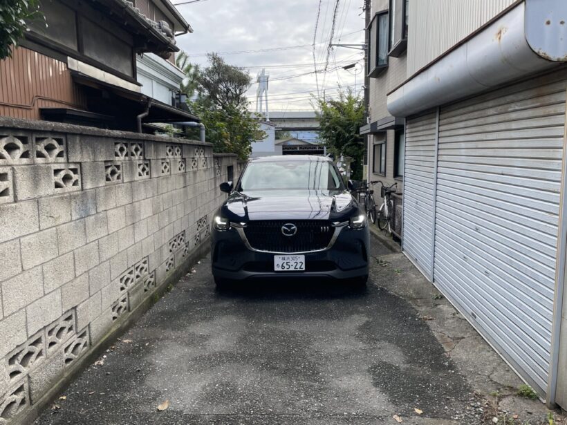 試乗 今や貴重な直列6気筒DOHCのFRベース四駆ターボ!マツダCX-80ディーゼルは満タンで横浜〜鈴鹿を2往復できたかも?【写真・18枚目】 フロントフェンダーの「INLINE6」エンブレム(右)。 メーター上の走行距離と燃費。 給油量は40L。燃料計の目盛から換算した消費量とほぼ一致した。 CX-80のフューエルリッドは左側。 CX-80(ディーゼル/4WD)のホイールベースは3120mmと国産車では最長クラス。 CX-80(ディーゼル/4WD)のボデイサイズは全長4990mm×全幅1890mm×全高1710mm。 CX-80(ディーゼル/4WD)の3列目シート。ドリンクホルダーは左右に2個ずつ。左右壁にそれぞれUSB(タイプC)ポートを備え、3列目席のユーティリティも疎かにしない。 センターコンソールボックス後端に配置された2列目席用のエアコン操作パネル。左右独立でこそないものの、風向や風量など細かく設定可能。USB(タイプC)ポートもふたつ用意されている。 マツダR&Dセンター(神奈川県横浜市神奈川区)。 マツダCX-90(北米モデル)。ボディサイズは全長5100mm×全幅1994mm×全高1736mm(北米表示のインチから換算)。なお、ホイールベースは3120mmとCX-80と同じ。 CX-80(ディーゼル/4WD) 枠線が二重なら特に問題は無いだろう。二重線の駐車場は基本的に幅に限らずスペースに余裕があることが多い。 1本線になるとやや厳しいか。左右のクルマはいずれも5ナンバーサイズ(全幅1700mm未満)。 5m以下ではあるが、ホイールベースが長めなので前後方向はいっぱいいっぱい。リヤオーバーハングは短めではある。 1車線の狭い通り。一方通行なので道路幅的に困ることはない。 住宅街の狭い路地。コックピットからはかなりギリギリに見える。 実際にはもう少し余裕があって、そこまでギリギリではない。 ただし、ホイールベースが長く、最小回転半径が5.8mあるので、狭い路地を曲がるのは難しい。とはいえ、同クラスのSUVやアルファード/ヴェルファイアよりは短かったりする。 エンジンはT3-VPTS型3283cc水冷直列6気筒DOHC24バルブインタークーラーターボディーゼル。最高出力170kW(231ps)/4000-4200rpm・最大トルク500Nm(51.0kgm)/1500-3000rpmを発揮する。 トランスミッションは8速AT。試乗車は4WDモデルだった。 フロントサスペンションはダブルウィッシュボーン式をおごる。写真はアッパーマウント側で、ショックユニットを挟むアッパーアームが見える。 リヤはマルチリンク式で、写真の範囲だけでも3本のアームが見える。 国内最上級車だけに特段スポーティな味付けではないが、居心地の良い運転席。インターフェースがオーソドックスなのも良かった。 ホイールは18インチと最近のこのクラスのクルマとしては控えめ。タイヤサイズも235/60R18と、幅はともかく60扁平でゴムボリュームも大きい。ホイールハウスにも余裕があり、170mmの最低地上高と合わせて走破性に余裕を感じさせる。 CX-60のエンジンルーム。昨今の例に漏れずカバーに覆われているが、カバーは直列6気筒エンジンを縦置きにしていることをアピールするデザインになっている。 マツダの乗用車ラインナップ。 マツダCX-8。 第三京浜。 保土ヶ谷パーキングエリア。 マツダCX-80。画像はPHEV車の最上級グレード「PHEV Premium Modern」。 センターコンソールの奥にはシガーソケットとワイヤレス充電を備えていた。 ワイヤレス充電のスペースは十分。比較的大柄なスマートフォンも置ける(写真は京セラTORQUE5G)。 エアコンの操作系は物理スイッチで使いやすい。シートヒーターとステアリングヒーターも装備。 マフラーのタイコは横置きで排気管出口は下向きなので、バンパーに露出しない。 マルチリンク式のリヤサスペンション。 ラゲッジルームにはAC100V電源(コンセント)とDC12V電源(シガーソケット)が備わる。 ラゲッジルームにはAC100V電源(コンセント)とDC12V電源(シガーソケット) 3列目シートのUSB(タイプC)電源。 ラゲッジルーム(通常時)。 ラゲッジルーム(3列目格納時)。 インストゥルメントパネル。 シフトレバーとMI-DRIVE スイッチ。 木が張り出した狭い通り。 給油したガソリンスタンドはレギュラー160円に対し軽油が146円だった(取材当時)。 狭い路地。 狭い路地。 狭い路地。ドライバーの視野的にはこのように見えた。 CX-80のエンジンルーム。 CX-80のエンジンルーム。 CX-80の3.3L直列6気筒DOHCインタークーラーターボディーゼルエンジン。 CX-80の3.3L直列6気筒DOHCインタークーラーターボディーゼルエンジン。 フロントフェンダーの「INLINE6」エンブレム(右)。 マツダR&Dセンター(神奈川県横浜市神奈川区)。 横浜〜鈴鹿のルート(参考) この画像の記事を読む