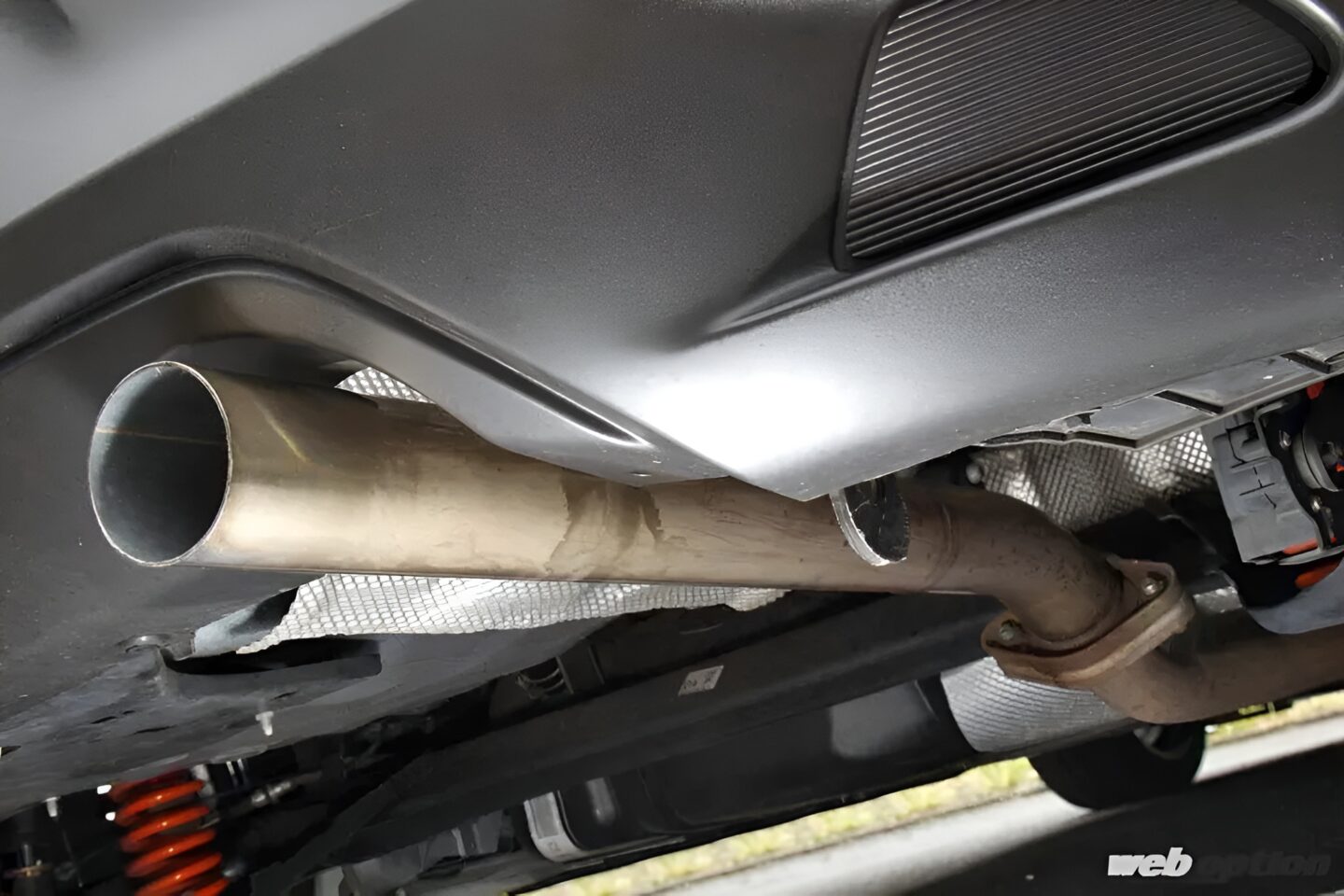 マフラーは、サイレンサーレスの60φ完全ストレートタイプ。さぞかし爆音…と思うだろうが、排ガスを浄化するPDFに消音効果もあるため、ノーマルよりやや低音が効いた程度の音量・音質となっている。