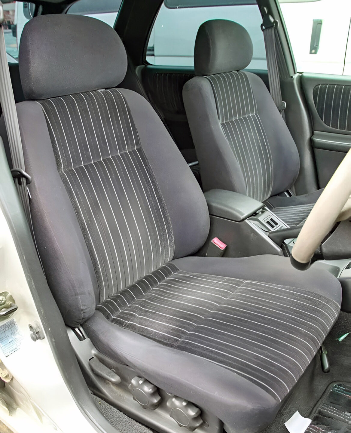 シートやドアトリムの表皮には肌触りの良いモケットを採用。ともにグレーのストライプがデザインされる。