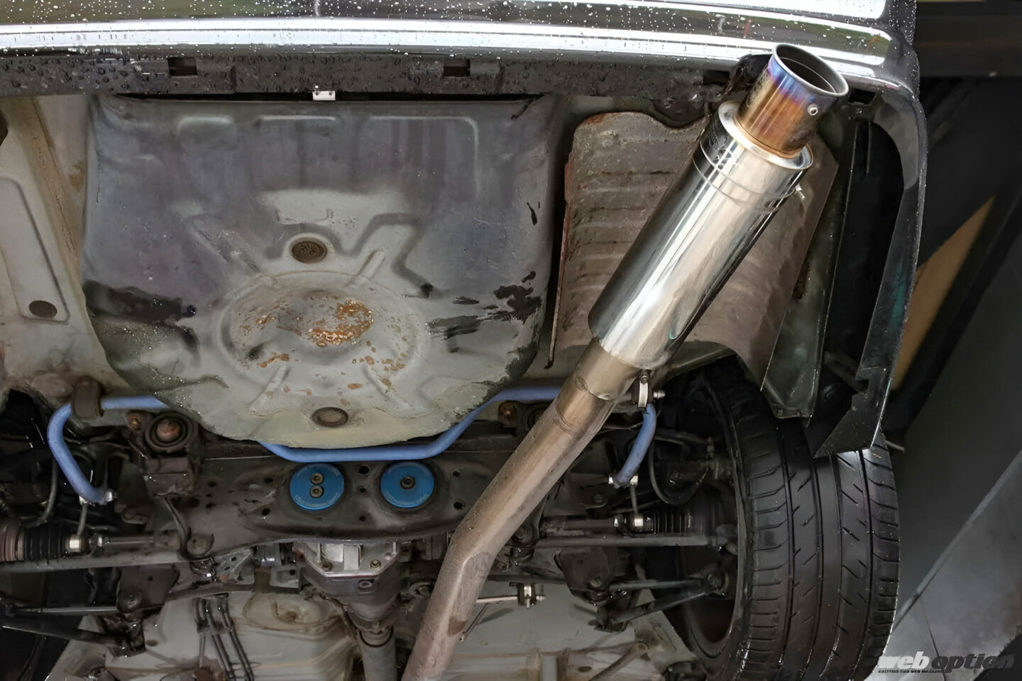 高出力化に合わせ、サード製スポーツ触媒や柿本改マフラーを装着して排気効率を向上。スタビライザーやリヤメンバーブッシュも強化済みで、機械式LSDはクスコ製を採用している。