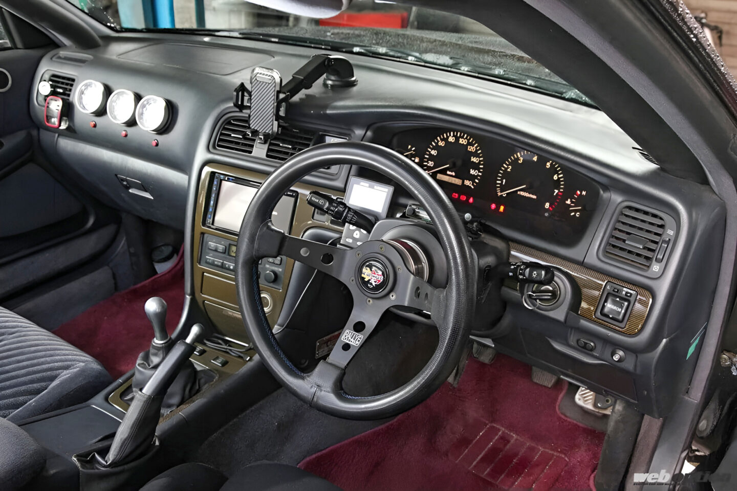 「当時はドリフト大会にも出ていて、周りに触発されてタービン交換に踏み切りました。吸排気チューンとは全く別物のパワー感で、シルビアと比べて感じていた車体の重さも気にならなくなりました」と前原さんは語る。