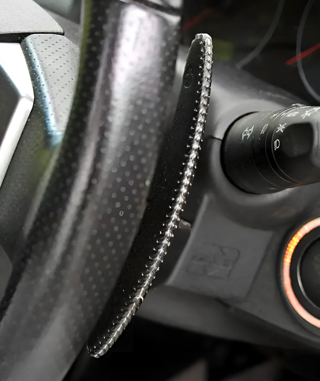 シフトアップ/ダウンはレバー前後操作の他、ステアリングコラム両側に設けられた本革巻きのパドルシフトでも可能。右側でシフトアップ、左側でシフトダウンとなる。適度なストローク量と確かなクリック感によって、リズミカルにパドル操作ができる。