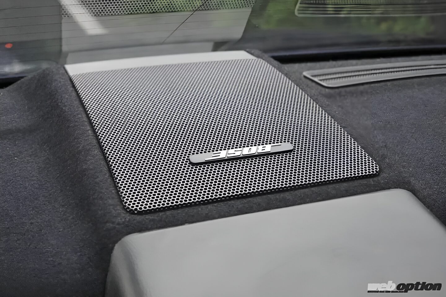 オーディオはプレミアムセダンに相応しく、BOSE社と共同開発したスカイライン専用BOSEサウンドシステムを標準装備。ヘッドユニットにはAM/FM電子チューナーラジオ、カセットプレイヤー、インダッシュ6CDプレイヤーが備わり、最大出力200ワットの7スピーカーで鳴らす。