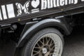 このフェンダーは、純正車高の車両に装着する事に意味がある。ノーマルのフェンダーアーチの高さよりも、さらに低い位置でアーチを造形。それによりタイヤとフェンダーのスキマを狭くし、視覚的なローダウン効果を生み出す事に成功した。