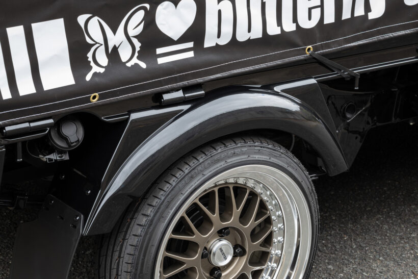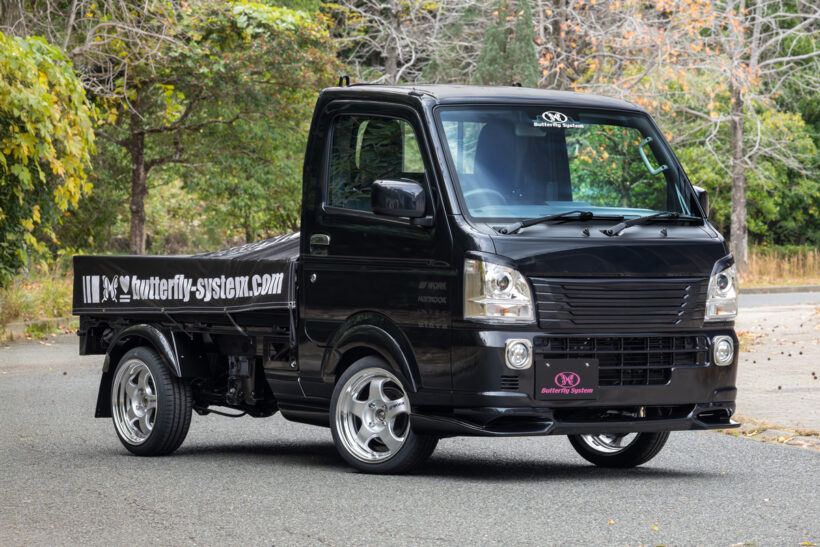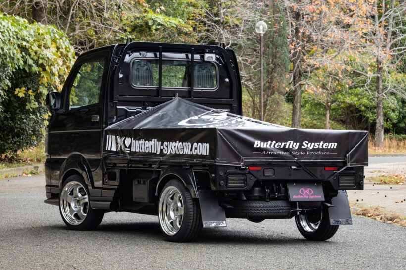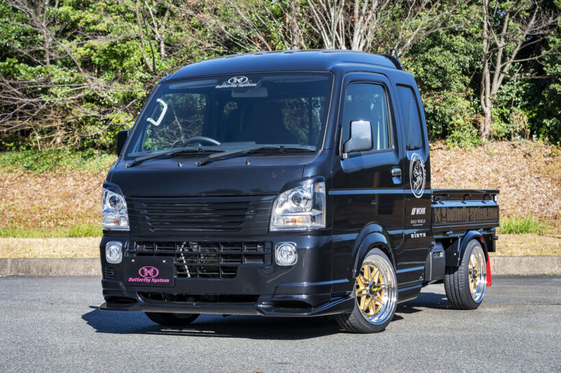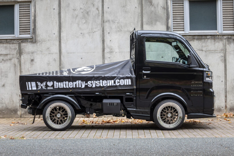 アイテム(カスタム) 「車高は純正のまま! 超短いサイドステップも見どころ!」軽トラの実用性を損なわない、視覚的ローダウン効果って?【写真・18枚目】 GLANZ・S500P HIJET TRUCK (MC〜) GLANZ・S500P HIJET TRUCK (MC〜) グリルは上下二分割タイプを採用。グランツが得意とする上質感あふれるデザインと、ヘッドライトとのツラを合わせた造形美が魅力。 導風効果がある3連ダクトが特徴。最低地上高が純正比120mmほど低くなるが、ノーマル車高で活用させれば実用性もほぼ問題無し。 リアフラップは左右分割式を採用。装着時の全体のバランス、スペアタイヤの操作性など、これも実用性との両立を意識した改心作だ。 サイドステップは、標準キャブ用として新規製作。未装着状態と比較すると、ドアパネルや足掛け部との一体感あるデザインが秀逸。 GLANZ・DA16T CARRY 純正サスにワーク・マイスターM1(3ピース:前後16インチ×6.5J/オフセット前+15、後+10)を装着してご覧のルックスに。 6本のルーバーデザインを採用し、乗用車のような高級感をもたらした。純正交換タイプで、両面テープのみで簡単に取り付けが可能。 導風効果も抜群な3連ダクトデザインが大好評。最低地上高は純正比で120mmダウン。純正穴を流用してボルトで簡単取り付け可能。 標準キャブ用に新開発。ドア下と足掛けの下部を一体化しつつ、フロントフラップからここに至るボリューム感やラインを整えた逸品だ。 スーパーキャリイをラグジュアリーに変貌させるドレスアップパーツとして、フロントフラップスポイラー、サイドステップ、フロントグリル、アイラインの計4点を開発。デモ車もここまでがローダウン仕様だった。 後期用ではグリルを純正との交換対応とし、二分割式に。また、目つきを変えるアイラインや、純正品と誤解するような出来栄えのサイドステップも新たに開発し、同社軽トラシリーズの方向性をここで決定づけた GLANZ・DA16T CARRY オーバーフェンダー(前:出幅40mm/アーチダウン45mm、後:出幅50mm/アーチダウン60mm)は、前後共に簡単装着可能。 純正サスにワーク・マイスターM1(3ピース:前後16インチ×6.5J/オフセット前+15、後+10)を装着してご覧のルックスに。 軽トラ用「グランツフラップ」シリーズは、ここから始まった。フロントフラップは後期にも継承された自慢のデザイン。グリルカバーは純正グリルとヘッドライトの各上部をカバーする一体型。アーチダウンオーバーフェンダーも装着可能。 この画像の記事を読む