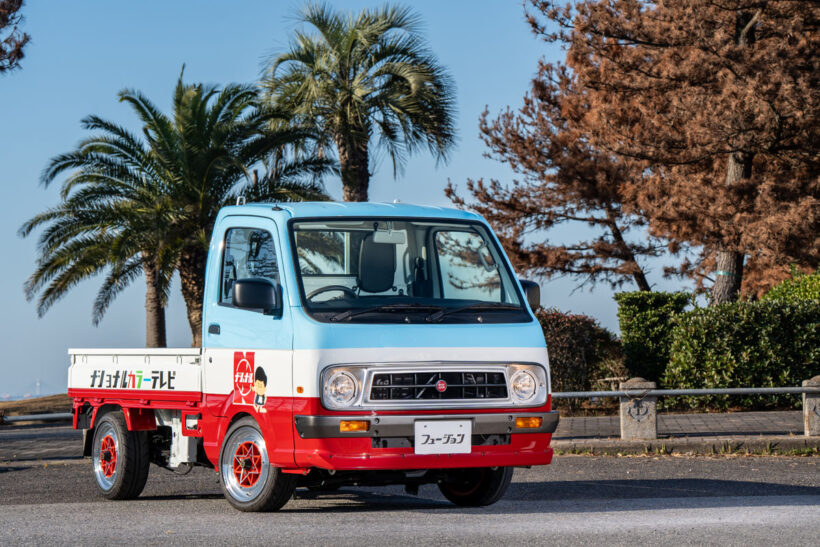 アイテム(カスタム) 「街なか走ればヒーロー確実!?」昭和感あふれる2代目サニー&ランクル顔の軽トラックが爆誕【写真・6枚目】 fusion/DA16T CARRY fusion/DA16T CARRY 格子状のフロントグリルもしっかり再現。ライトなどの灯火類は別売となる。チンスポは専用設計だから、ボトムにしっかりフィット。 太鼓部分までステンレスだから仕上がりも美しい。もちろんJQR認証をクリアしているため、車検も問題なし(一部の仕様は除く)。 腐食に強いオールステンレスのレベルサウンド304マフラー。テール形状は先端を滑らかにカールさせたスポーティなシングル出し。 fusion・S500/510P HIJET JUMBO グリルのエンブレムは別売。トヨタエンブレムを装着することで、ランクルらしさがさらに強まる。フィンのレイアウトもリアル。 フェイスリフトキットに合わせて設計したブルバーは、ステンレス製ブラック仕上げ。ブルバーは純正バンパー用も販売している。 機能性を重視したハイゼットの内装をグレードアップする黒レザーのシートカバー。車種専用設計だからフィッティングはバツグン。 足まわりはリフトアップ用にチューニングしたアップバースト車高調。ビジュアルだけでなく、しっかりとした乗り味も追求する。 この画像の記事を読む