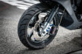 フロントホイールはアドレス110用を極限まで研磨してからトヨタの202ブラックで塗装。DY製のフロントフォークはセミオーダーとなっており、ホンダ車用のNCY製φ220mmローターにはFrando製ラジアルマウントキャリパーをセット。