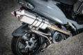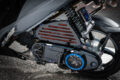 マフラーはkurodayaによるワンオフのチタン製を奢る。リヤホイールもアドレス110用とし、フロント同様にトヨタの202ブラックでペイント。フェンダーレス加工が施されており、小型のMOS製インナーフェンダーが追加されている。