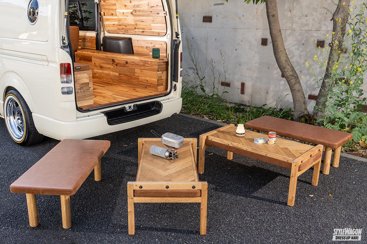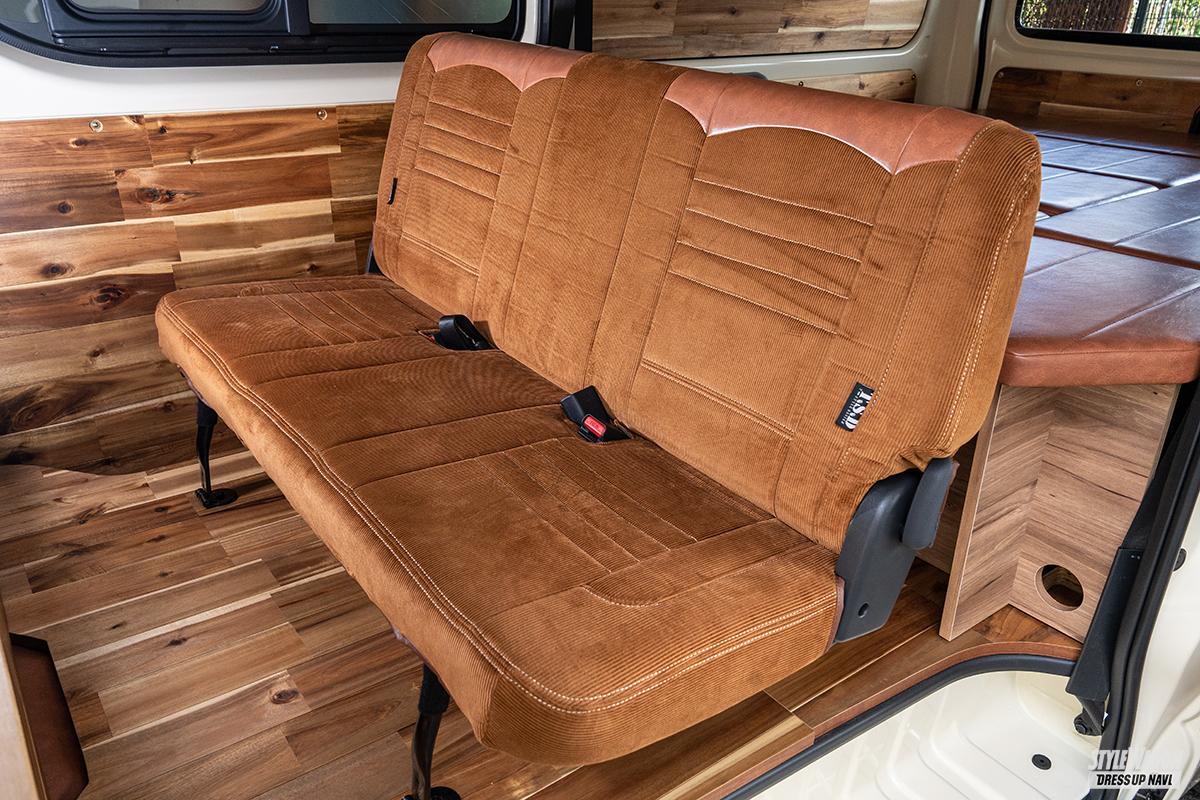 いずれのコンプリート仕様も、天井&両サイドのウッドパネルやコーデュロイ生地を使ったシートカバーを標準装備。ウッドや生地がエイジングによって、自分だけの空間になっていく時間も楽しめるのも他にはない魅力のひとつ。細部に至るまでの完成度はもちろん満足度もすこぶる高いTSDスタイリングのバントリーDX&ベンリー。200系ハイエースでアウトドアなロードトリップを楽しむシーンが自然と浮かんでくる。