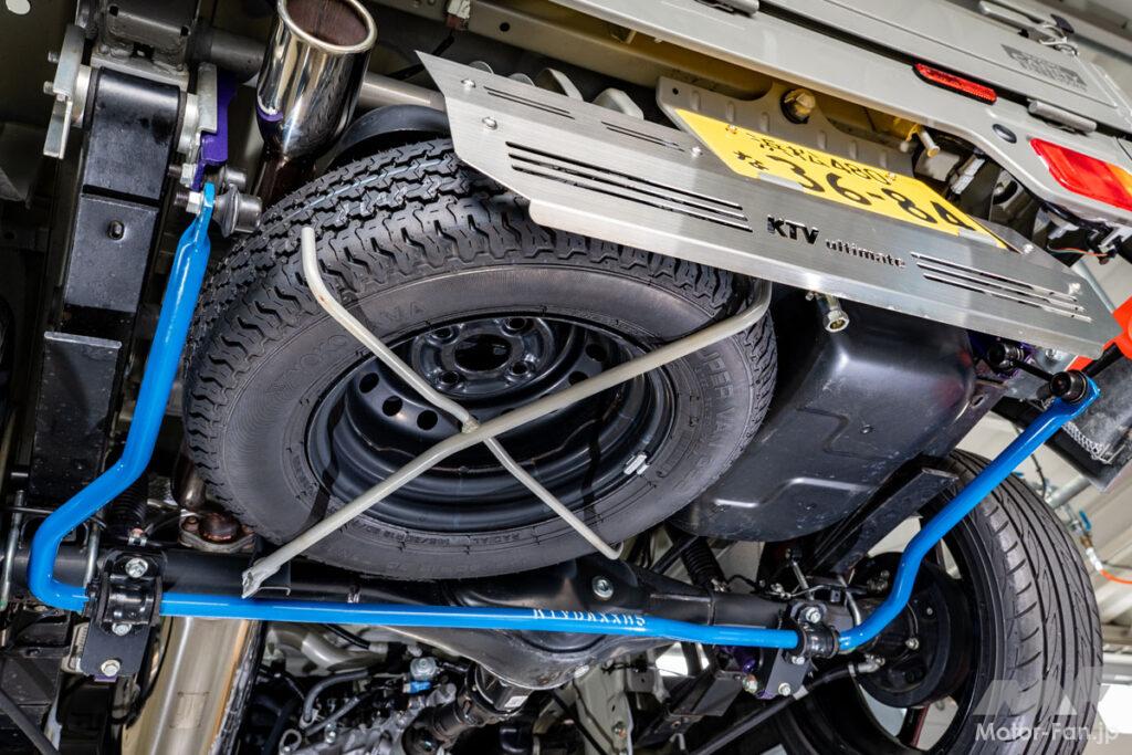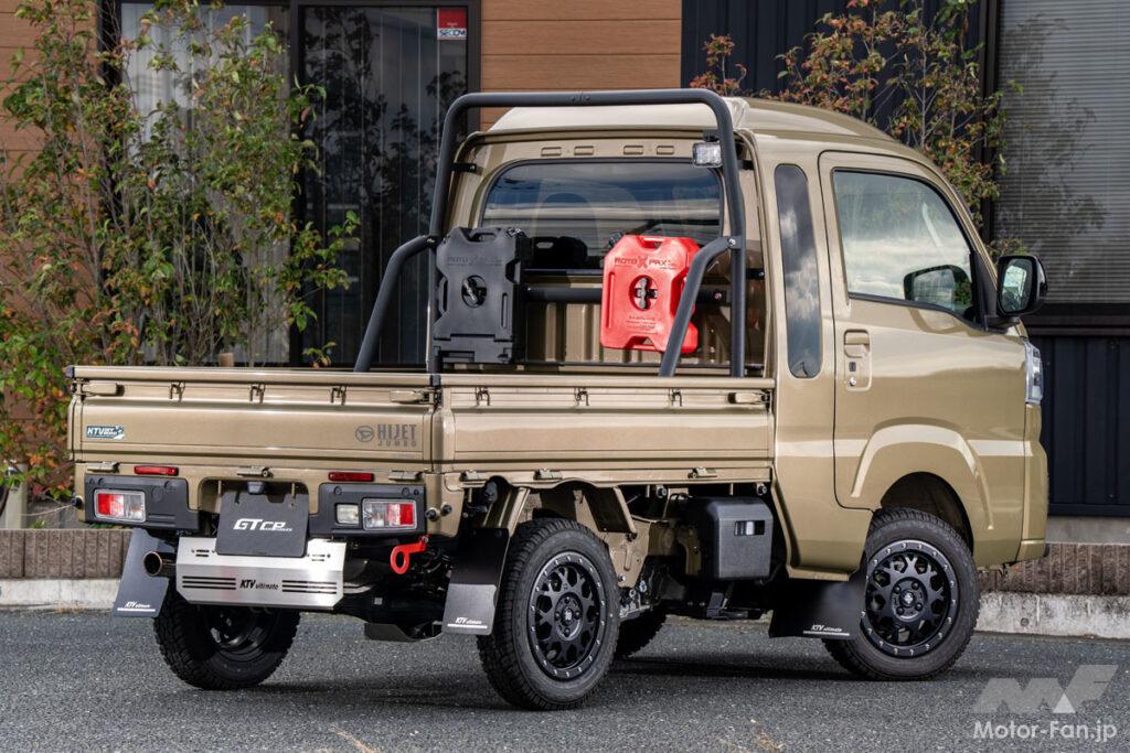 軽バンでは「バンパーを削らなくても楽しめるチョイアゲスタイル」を提唱するGTカープロデュース。ハイゼットジャンボでもそのスタンスは変わらないリフトアップスタイルを提唱。反面、腹下のガード類は非常に充実しているため、悪路の走破性では抜群の実力を見せつけてくれる。なお、ガードバーなどドレスアップ性にも機能性にも優れたアイテムもリリース済み。KTVオフロードは「見た目も、走りも諦めたくない」という人にはピッタリのブランドなのだ。もちろん、チョイアゲでも「走り」の楽しさはそのまま残っているのでご安心を。