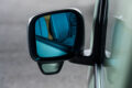 スタイリッシュなブルーワイドミラーは、太陽光や後続車のライトの光をカットすることが可。広角ミラーだから視認性も向上できる。