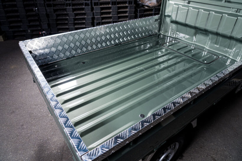 アイテム(カスタム) 「スピンドルフェイスのハイゼット」は室内も凄い!!【写真・15枚目】 REIZ・S500P HIJET TRUCK(MC〜) グリルまでが一体となった大型のフロントバンパーは、攻撃的かつ立体的なフォルムだから表情が一変。塗り分ければさらに精悍に。 REIZ・S500P HIJET TRUCK(MC〜) ライツのロゴが入った車種専用ドアバイザーは、視認性を妨げないライトスモークカラー。両面テープと固定具のダブルロックで安心だ。 種専用で設計されたオーバーフェンダーキットは片側9㎜ワイド。表面が雰囲気のあるシボ風仕上げとなっているため塗装も不要。タフさが薫るダミーボルト付きなのもポイントだ。ライツのロゴが入った車種専用ドアバイザーは、視認性を妨げないライトスモークカラー。両面テープと固定具のダブルロックで安心だ。 車種専用で設計されたオーバーフェンダーキットは片側9㎜ワイド。表面が雰囲気のあるシボ風仕上げとなっているため塗装も不要。タフさが薫るダミーボルト付きなのもポイントだ。ライツのロゴが入った車種専用ドアバイザーは、視認性を妨げないライトスモークカラー。両面テープと固定具のダブルロックで安心だ。電動格納ミラー装着車のためのドアミラーカバーは高級感大のカーボン調フィニッシュ。 耐久性に優れたSUS 304ステンレスを素材としたドアハンドルアンダーカバー。キーフリーシステム装着車専用。カーボン調など3色あり。 3Dスキャナで採寸して設計されたドアハンドルアンダープロテクター。ABS樹脂製で傷付き防止効果が大。クロームメッキorカーボン調。 荷台への乗り降りをサポートしてくれるサイドステップ。鉄製だから頑丈、ボルトオンで取り付けられるのも安心。カラーはブラック。 耐久性が高いSUS304ステンレス製のバックキャビントリム。メッキ調の鏡面仕上げと立体カーボン調、ブラックメッキ調の3色を設定。 荷物による傷付きとサビの発生を防ぐため、荷台の内側をカバーするアオリガードインナー一体型。アルミ縞板だから軽量、耐腐食性も優秀。 純正と交換装着できる大型のマッドフラップ。カラーが全4色と豊富で、ウェイトと取り付けステーは鏡面ステンレス。泥よけ効果大。 クリスタルLEDライトバーを採用したスタイリッシュなフルLEDテール。ウインカーは片側18発のシーケンシャル式。カラーは全8種。 傷付きやすいグローブボックス部を保護するためのキックガード。メンテしやすいPVCレザー製で、キャメルとブラック、カーボン調。 PVCレザーを採用した車種専用のレザーシートカバー。キャメルのクラシックレザーのほか、レッド、ホワイトのキルティングレザーも。 3連ポケット付きのサンバイザーカバーはファスナー固定式で取り付けもラクラク。デザイン&カラーちがいの全3種類を用意する。 純正交換コンビステリングは木目調やカーボン調などバリエーションが多彩。パッションオレンジ、ターコイズブルーは新カラーだ。 ABS製ドアトリム材にPVCレザーを張ったレザードアトリム。ブラックとキャメル、レッドの全3色。ドア用キックガードも設定あり。 Aピラー部分にツイーターを取り付けるためのキットも現在開発中。ビジュアルだけでなくサウンドも改善すれば快適性は爆アガり。 エッジを高くすることでフィット感を高め、汚れの飛散防止にも役立つ立体形状フロアマット。撥水性と防汚性に優れた特殊素材製。 2024年4月のMC以降に対応するドアミラーカバー。純正同形状だから自然なフィット感を実現できる。メッキとカーボン調2種の3色。 美しい鏡面仕上げなど数色を設定する荷台ステップガーニッシュも近日発売予定。3Dスキャナで採寸、設計しているから装着感も自然。 純正状態では心許ないリアフェンダー部を効果的なドレスアップポイントへと変身させられるリアフェンダートリム。これも近日発売。 スタイリッシュなブルーワイドミラーは、太陽光や後続車のライトの光をカットすることが可。広角ミラーだから視認性も向上できる。 ハイゼット同様に、ドア内張りに高級感を演出するレザードアトリム。片側3ピース構成となっており、それぞれ左右2ピースで購入可能。6ピースセットは少しお得になっている。 この画像の記事を読む