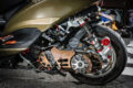 駆動系カバーはオープンタイプとしており、クラッチ関連はレノボ製の多板式クラッチを採用。リヤショックはRCB製で、ワンオフのエンジンハンガーによりホイールベースは150mmストレッチされている。