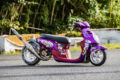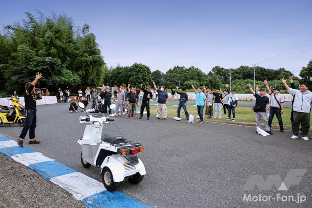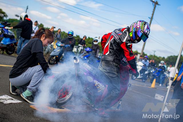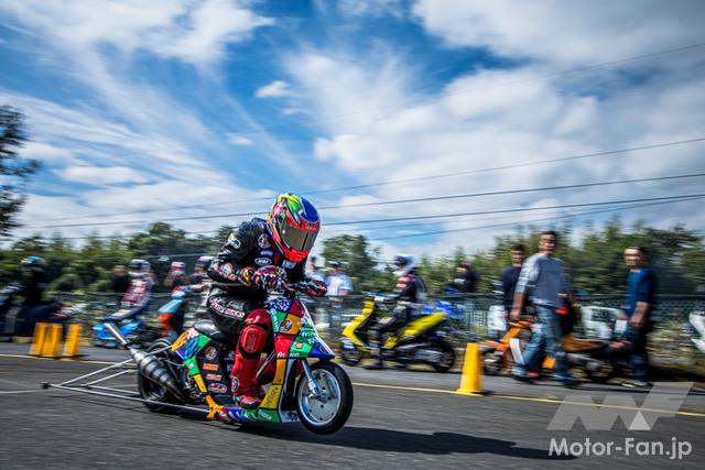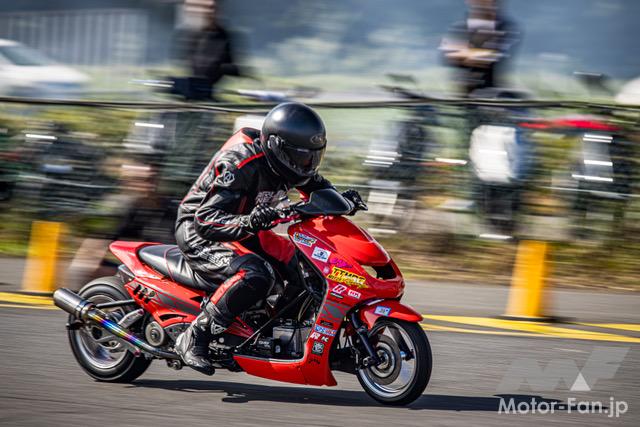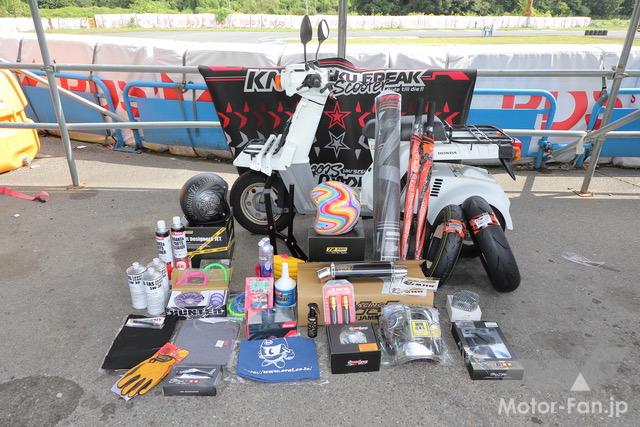 バイクイベント スクーターミーティング2025(Scooter Meeting 2025)【写真・2枚目】 50.29mのタイムを競うSS1/32mile。トップタイムは昨年に引き続き「オヨヨ@SPEC-R3 TSR」で、なんと4連勝! またオヨヨに肉薄する3秒197をマークしたチョロシグが4ストスクーターで2番手タイムとなった。 2ストや4ストのレース用フルチューンスクーターが模擬レースを開催。模擬レースとは言え、手加減無しのガチバトルが手に汗握る大迫力! KN企画の大木選手が関西の強豪を抑える形で2年連続のチェッカーとなった。 今回は2台のスリーター(HVファクトリー)が登場。OVERレーシング製の試作マフラーも注目を浴びていた。 サブアームが制作した2ストミッションエンジン搭載の驚速モトコンポも登場! 豪華景品がズラリと並ぶジャンケン大会も見逃せないコンテンツだ。 協賛各社様からいただいた協賛品は、最後のコンテンツとなるプレゼント大会で参加者の皆様に配布された。なんと今回はジャイロXもプレゼントされた! この画像の記事を読む