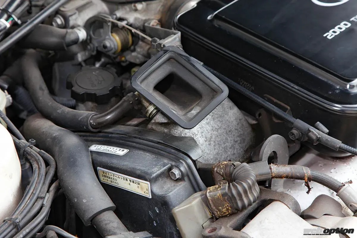 これを見て、「あ、タイミングベルト冷却ダクトだ!」とすぐに分かった人はセリカGT-FOURマニア。ST185では『RC』だけに装備されてたモノだけど(外装ではボンネットアウトレットダウトの横に小さな丸いエアインテークが追加されている)、ST205ではベースモデルを含めて採用されることになった。というかST205にはそもそもRCが存在せず、初期に2500台限定でWRC仕様がラインナップされていたのだ。