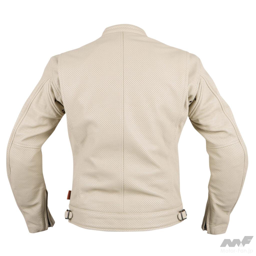シンプルでオーセンティックなシングルライダースのフォルムで、エグザリートレザーを使用したパンチングメッシュモデル。機能性とデザインを兼ね備えたスタンダードモデルながら、快適にライディングできる機能を数多く装備している。脇の下にはアイレット付きのマチパーツと、背脇にはアクションプリーツを採用することで、優れた運動性能を実現している。ジャケット着用時の美しいシルエットを追求して、各部のサイズを見直している。袖周りのデザインをリニューアルして、美しく動きやすい形状に。裏地素材には通気性と吸汗速乾性に優れたCOOLMAXを採用したことで暑い時期に汗をかいても素早く乾き、気化熱よって涼しく感じることができる。プロテクターは肩と肘にK-4360、脊髄にK-4361を装備して安全性にも配慮する。背パッド袋も改良して各種プロテクターを使用できるほか、MIDベスト(冬季用)やメッシュベスト(夏季用)を装着することもできる。