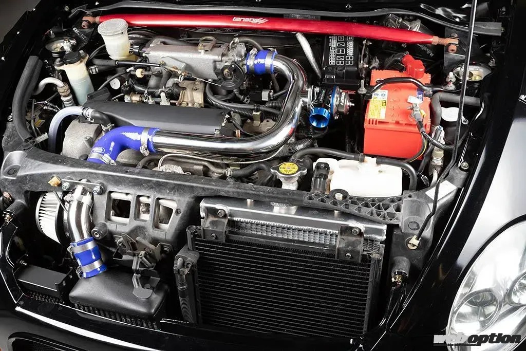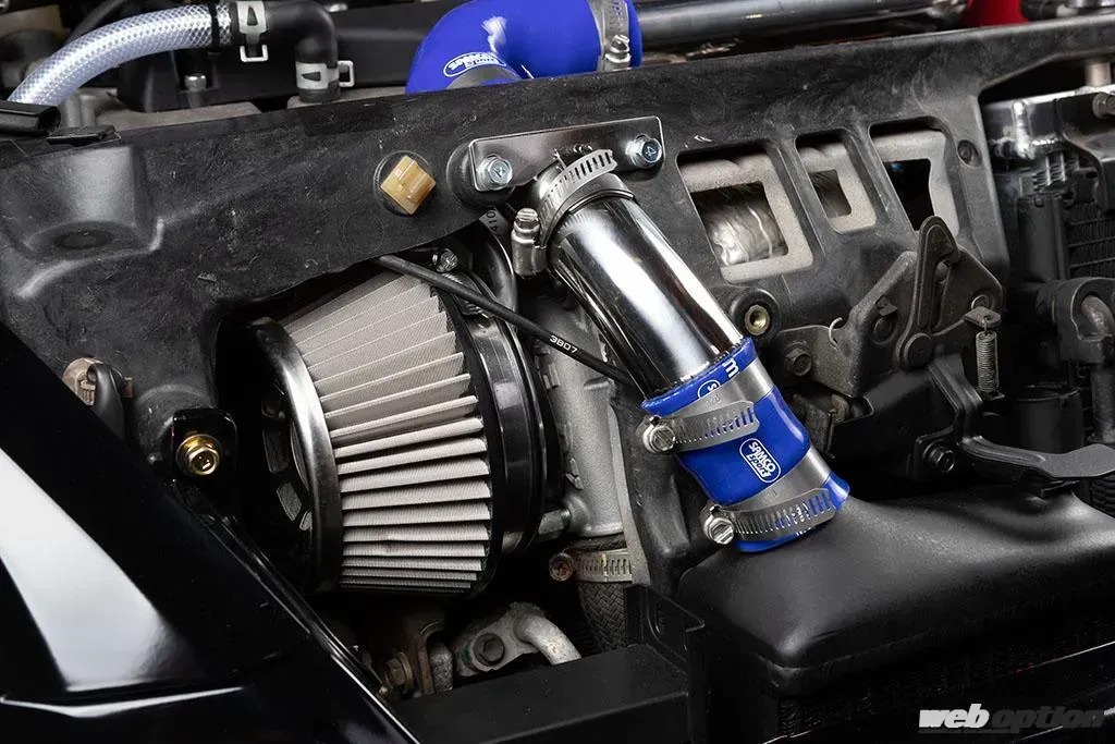 パワーチューニングも抜かりない。エンジン本体はノーマルだが、HKSのR888タイプインタークーラーや“も。ファク”製ラジエター&オイルクーラー等で冷却系を整えた上、HKSのDX30Kaiタービンをセット。F-CON iSによる制御で実測102ps/12kgmという純正の2倍近いパワーを絞り出している。