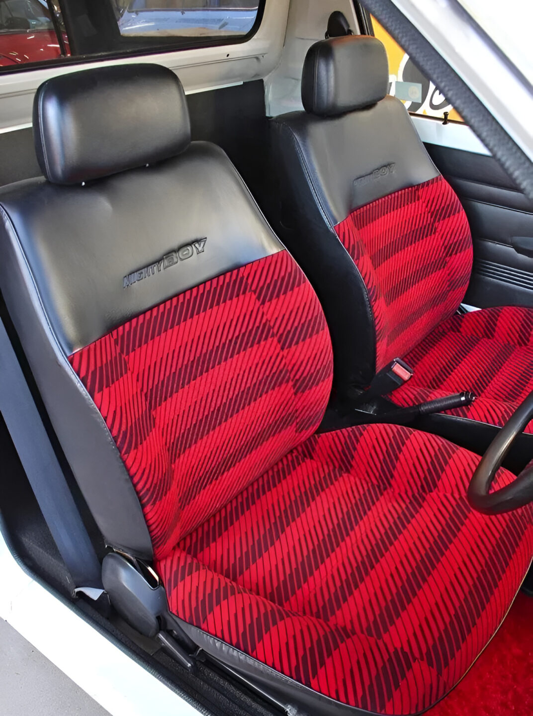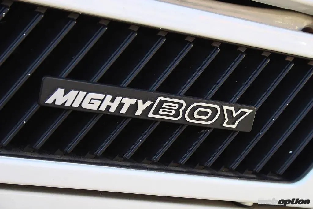 2代目セルボをベースとして、リヤセクションをピックアップに仕立てたマイティボーイは1983年2月に登場。直3SOHCキャブ仕様のF5Aを搭載し、カタログ値28ps/4.2kgmと、思わず笑ってしまうスペックだ。