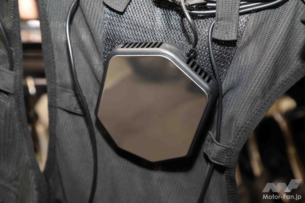 昨年発売して、多くのモトブロガーが取り上げて大バズりとなったペルチェ・ベストが、早くも2世代目に進化して登場した。「ペルチェ」とは半導体のペルチェ素子のことを指し、2種類の金属の間に電流を流すと、片方の金属からもう片方の金属に熱が移動するという効果を利用した半導体。冷却服に採用されているペルチェ素子は、モバイルバッテリーなどを接続して、直流の電流を流すことで、内側の熱を外側に移動させて、内側の金属プレートが冷えるというもの。逆に接続すれば内側のプレートが温まり、暖房服にもなる。