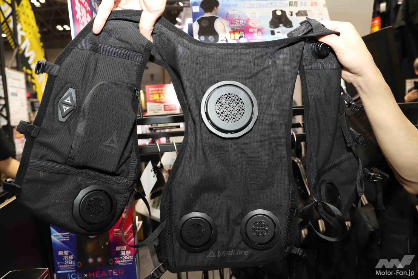 ワークマンから発売予定のWZ-5 WindCore ICE×HEATER ペルチェベストPRO2は、背中と脇腹の計5カ所にペルチェを配置して、瞬間冷却最大-28℃(表面温度約-3℃)、瞬間温熱最大約+39℃(表面温度約49℃)の効果が得られるというもの。実際に着用してみると、背中の大きなペルチェ素子がキンキンに冷えていて、脇腹付近の4カ所のペルチェも冷たく、大きな血管が通る場所をしっかり冷やしてくれそう。これまでペルチェ素子はあんまり冷たく感じないと思っていたが、このベストなら真夏のライディングにも効果的だろう。しかもバッテリーまでセットされて税込1万9800円というリーズナブルなプライスだ。さらに数量限定でペルチェ部分が冷却時にはブルーに、暖房時にはレッドに光るスペシャルエディションも発売予定。デリバリーは6月頃が予定されているが、会場では先行予約を開始していた。この夏さらに話題になりそうだ。