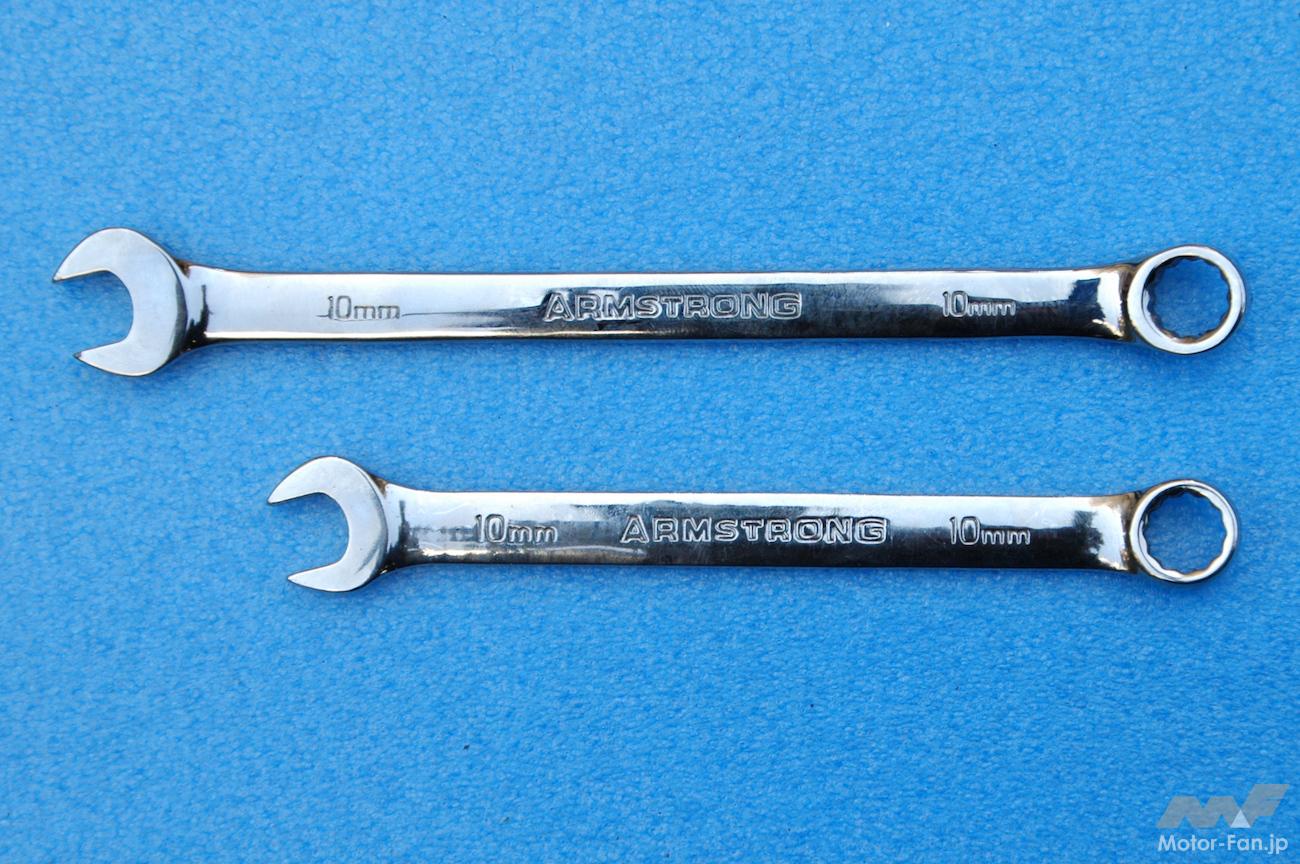 長短2本の10mmコンビネーションレンチを用意したが、作業は1本で十分。