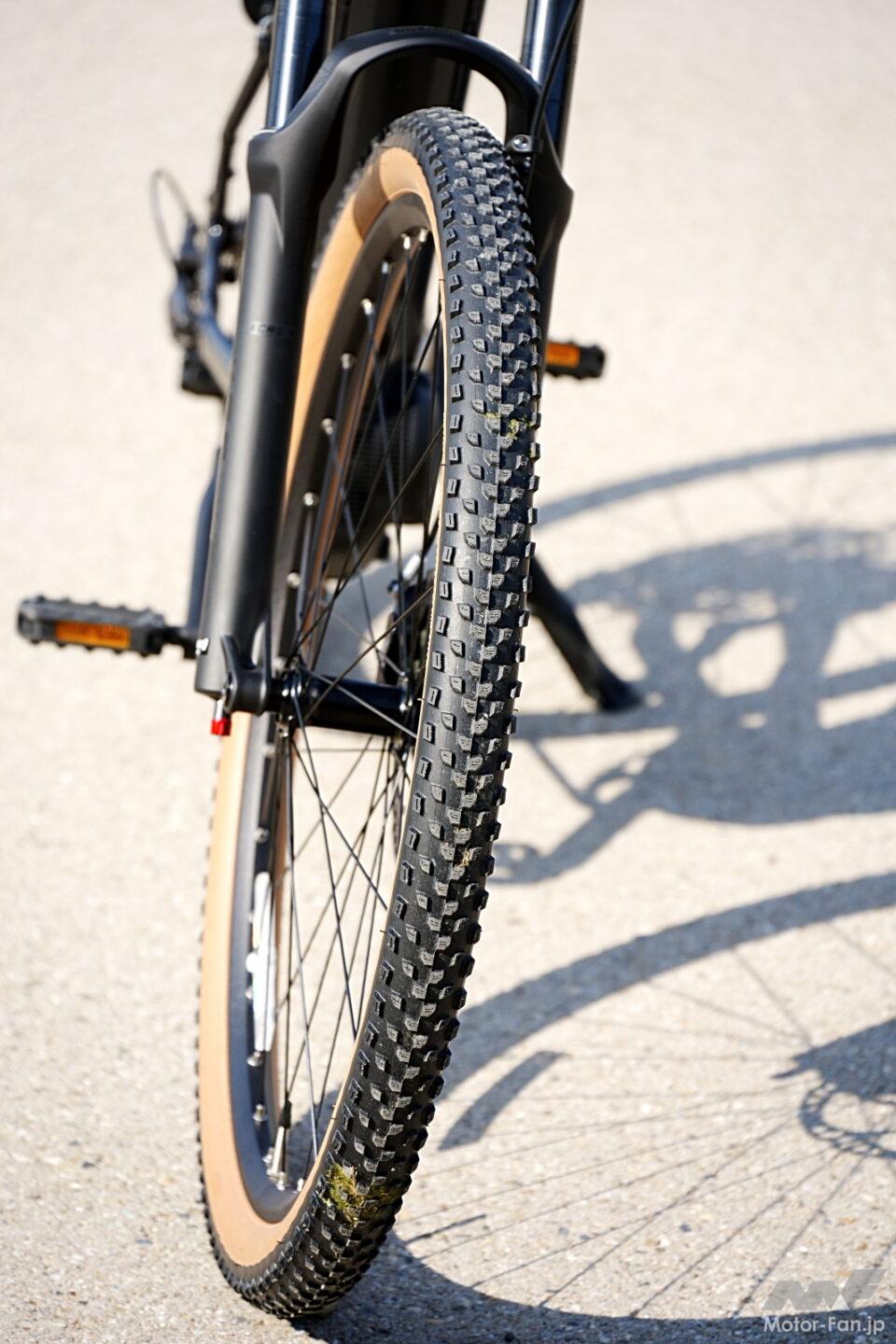 スタイリング面では“いかにもeMTB”というスポーティ一辺倒から一歩踏み出し、日常の服装にもなじむレトロモダンなカラーリングを採用した。ブラックを基調にベージュのサドルやグリップ、タイヤウォールを組み合わせることで、アウトドアから街乗りまで違和感のない外観としている。高性能モデルでありながら過度な主張を避けたデザインは、まさに日常と非日常の橋渡し役といえる。