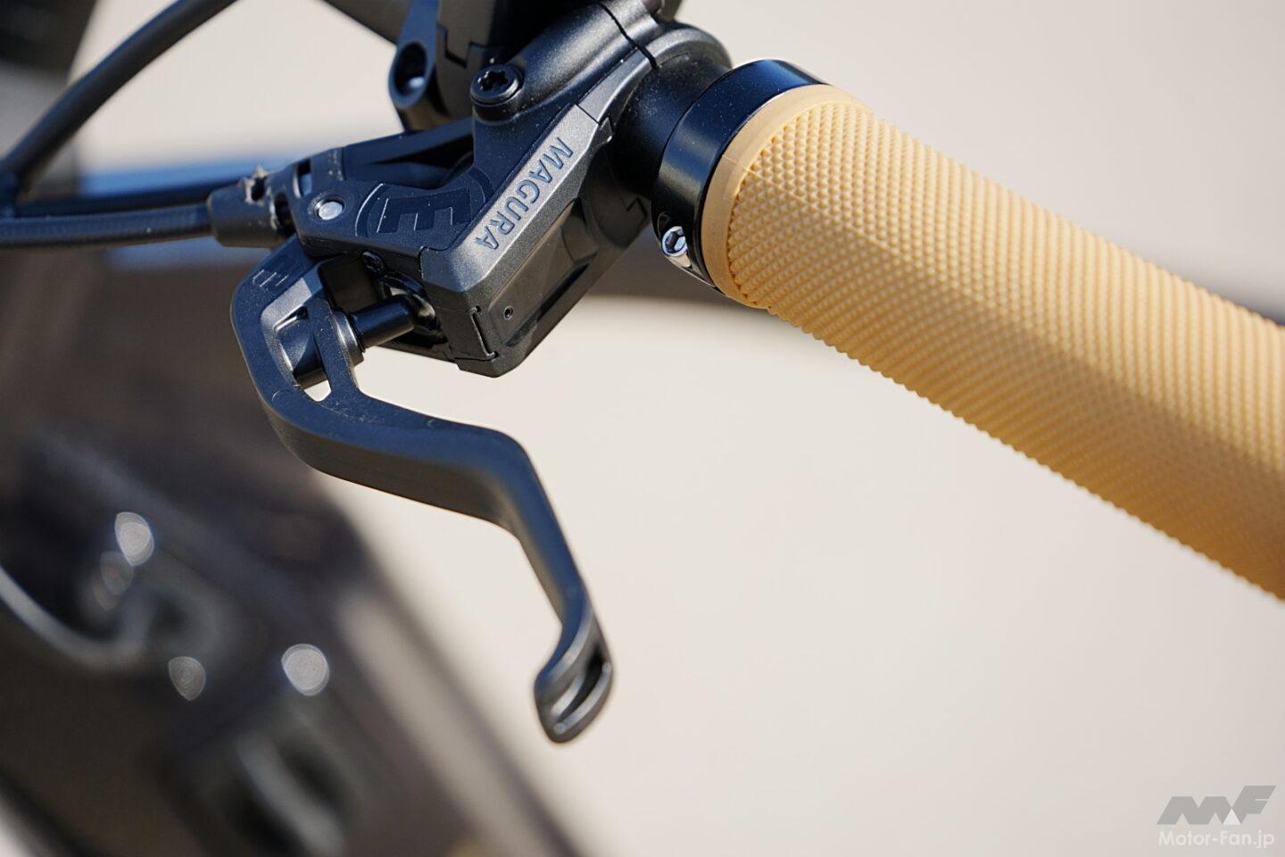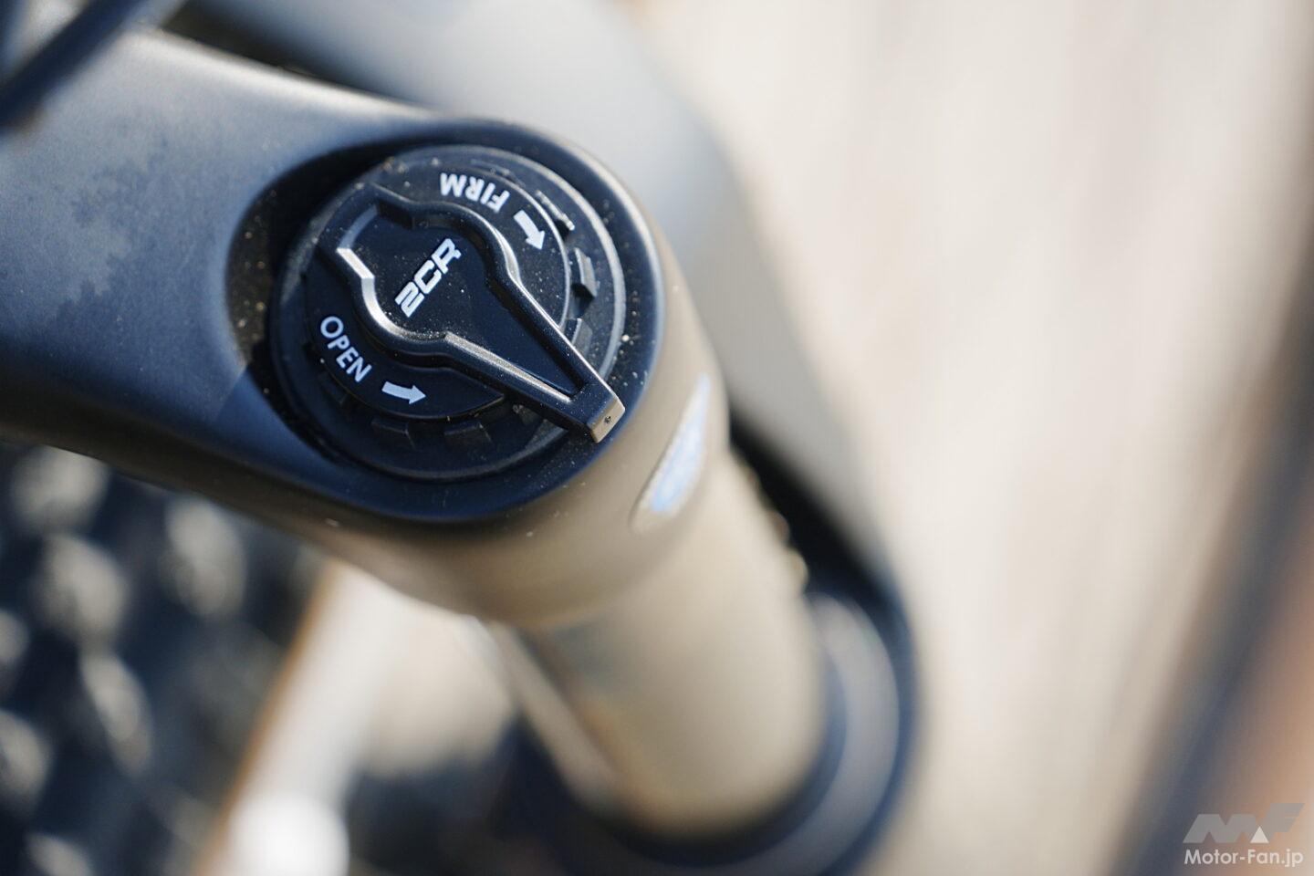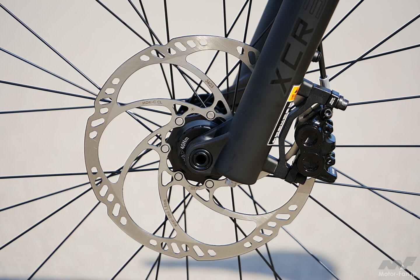 車体構成はクロスコアRCのオンロード性能をベースにしつつ、オフロード対応コンポーネントを組み合わせたものだ。ドライブユニットには小型軽量でパワフルなPWシリーズS2を搭載し、リヤのギヤには10-51Tというワイドレシオを採用。急勾配でも余裕を持って走破できる。ブレーキはフラッグシップMT Proと同系統のマグラ製を採用し、高い制動力とコントロール性を確保した。さらにハンドルのレバー操作でサドルの上下調整が可能なドロッパーシートポストを標準装備し、路面状況に応じたポジション変更を容易にしている。