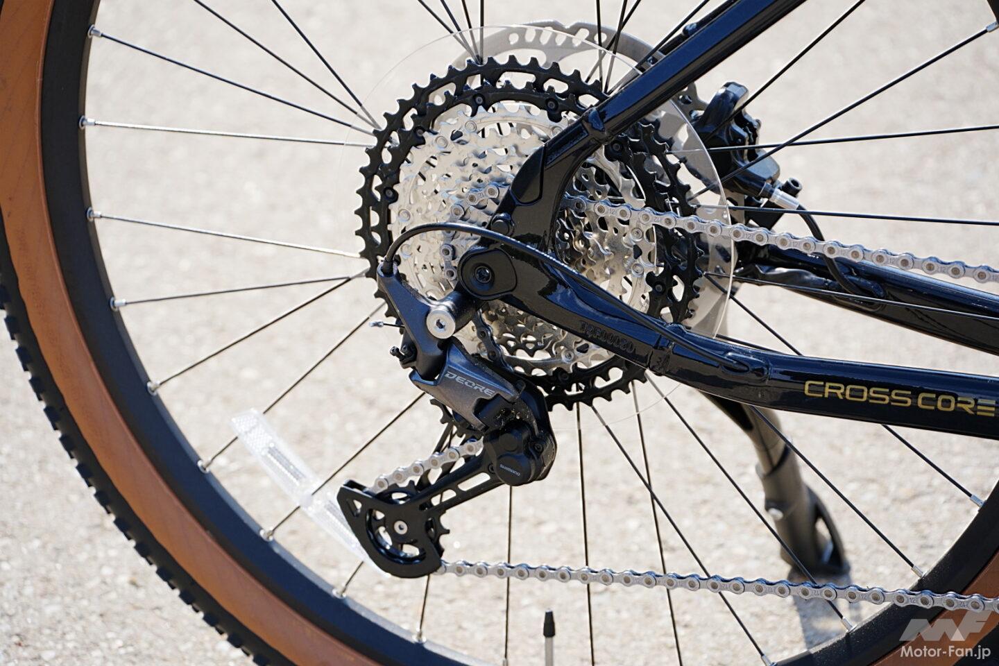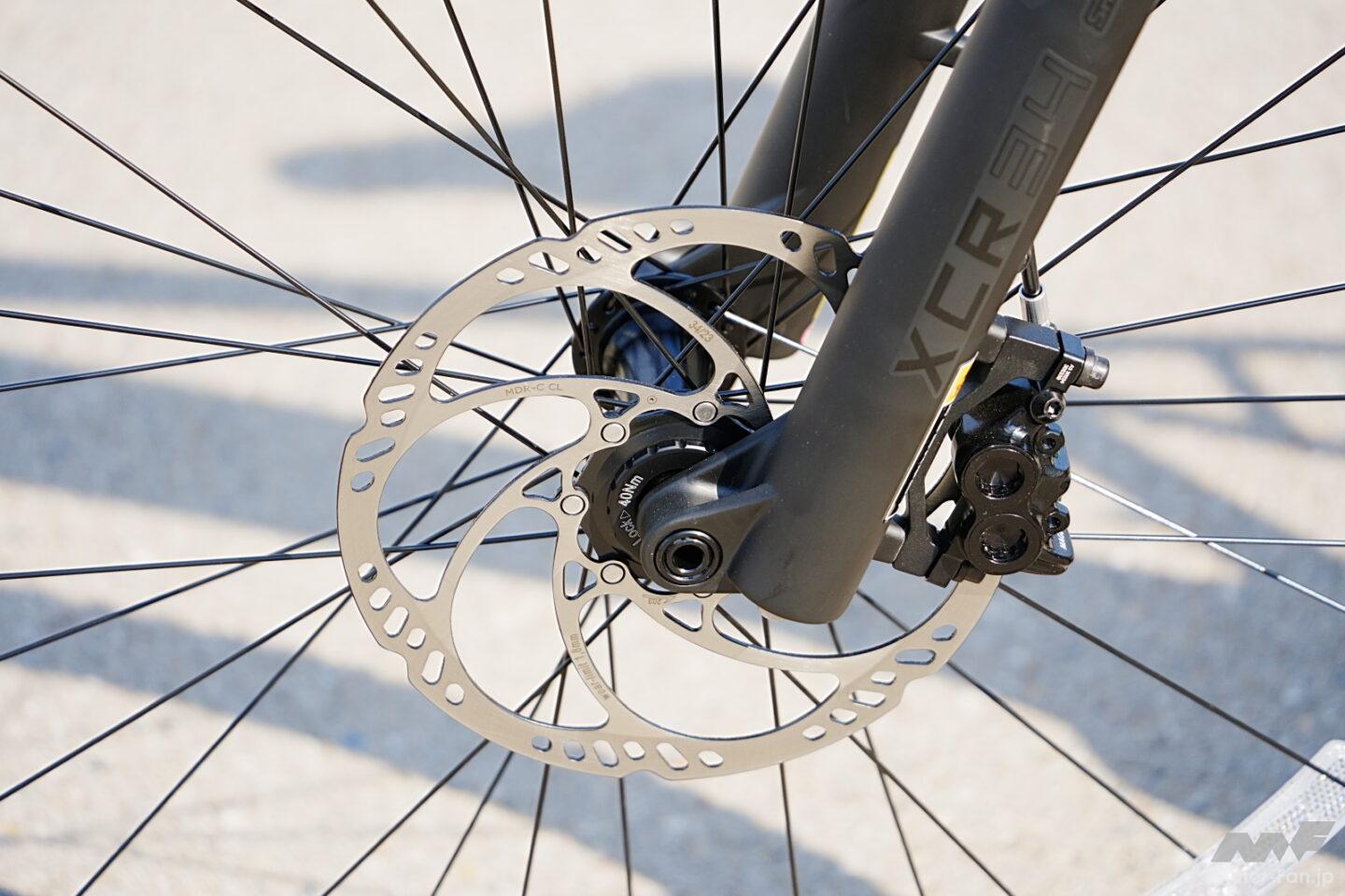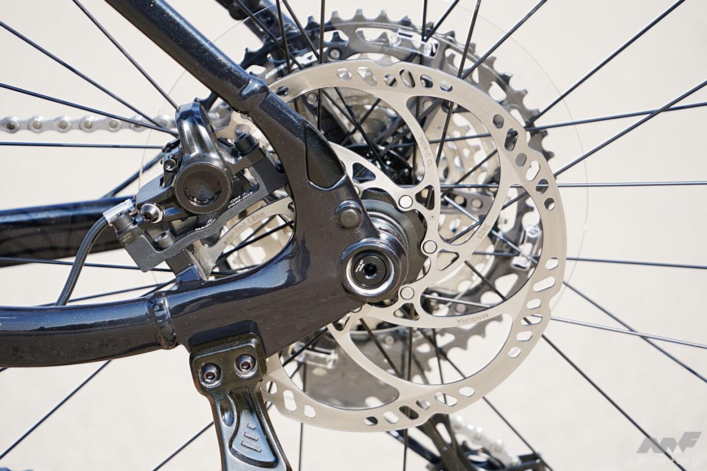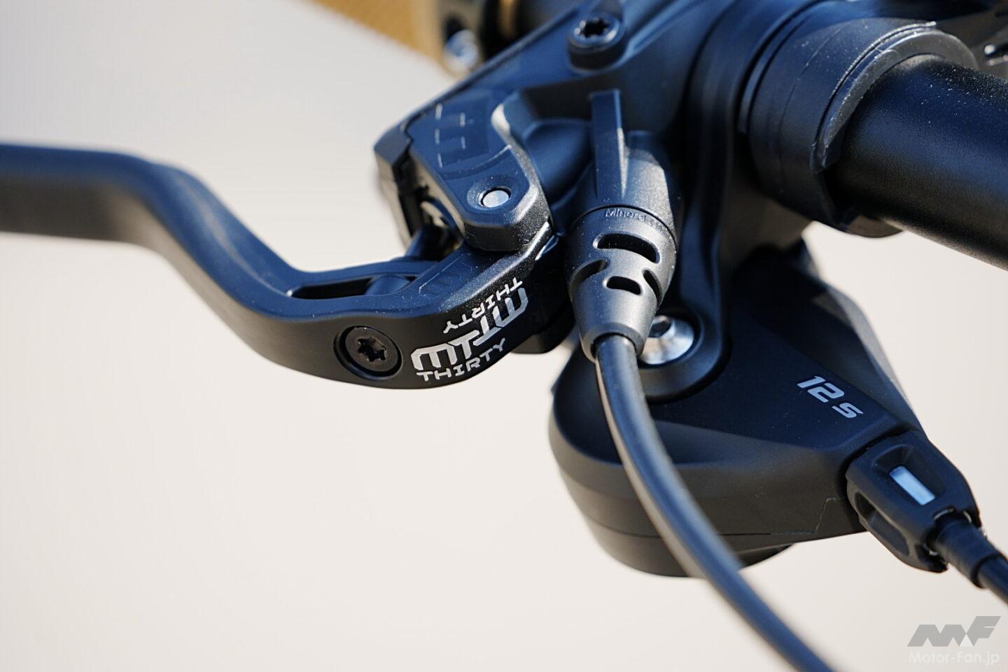 車体構成はクロスコアRCのオンロード性能をベースにしつつ、オフロード対応コンポーネントを組み合わせたものだ。ドライブユニットには小型軽量でパワフルなPWシリーズS2を搭載し、リヤのギヤには10-51Tというワイドレシオを採用。急勾配でも余裕を持って走破できる。ブレーキはフラッグシップMT Proと同系統のマグラ製を採用し、高い制動力とコントロール性を確保した。さらにハンドルのレバー操作でサドルの上下調整が可能なドロッパーシートポストを標準装備し、路面状況に応じたポジション変更を容易にしている。