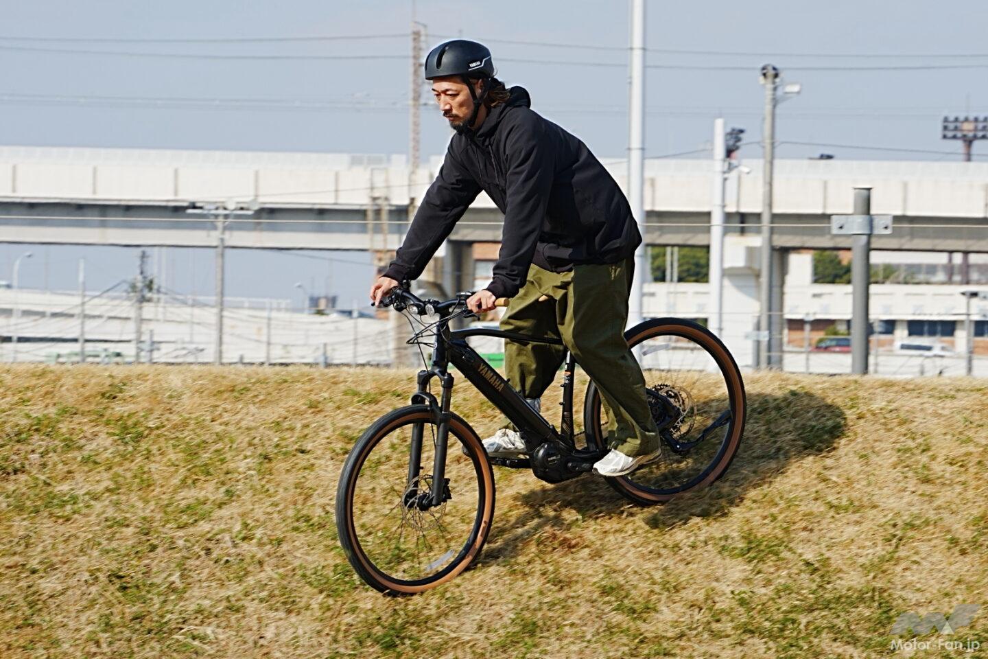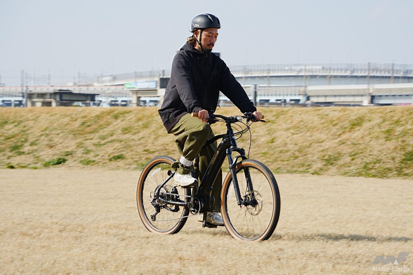 開発の背景にあったのはユーザーの使い方の変化と本音だ。本来オフロード志向のモデルであっても、実際の利用シーンは街乗りが中心であり、スタンドを後付けするなど日常用途への適応が求められていた。また、惜しまれつつ生産終了となったYPJ-XCの後継的ポジションを望む声も多かったという。そこでヤマハは、SUV的な発想、すなわち舗装路から未舗装路までフィールドを選ばない万能性を電動アシスト自転車で実現することを目指した。