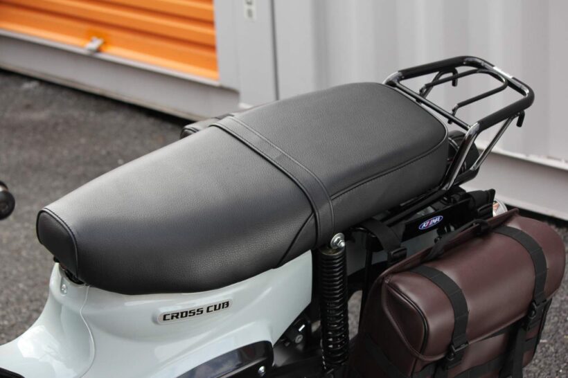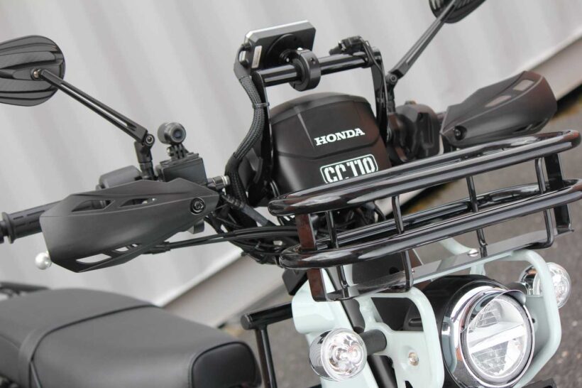 バイクカスタム やりすぎないのがいい!キジマのクロスカブ110は休日のお出かけにちょうどいい“等身大ツーリング仕様”だ!【写真・15枚目】 キジマ製ナックルガード(7700円)。クロスカブ110の2018〜現行にジャストフィットするナックルガード。耐久性のある樹脂製で幅約90mm×高さ約220mm。専用ステーにより装着がしやすく、クランプにラバースペーサーを使用するなど細部までキジマらしいこだわりが満載。キジマのマウントバーステー(7920円)は、φ22.2mm径に対応し各種アクセサリーの装着に便利だ。 シールドのセンター部にアルミフレームを配置。これにより耐震性と強度が高められており、使いやすく、高い防御力を実現している。 ホンダ系ミニに合わせたストッパーステーは、ミラーのクランプと共締めすれば回り止めになるうえ、装着位置がズレにくいのだ。 キジマのLEDフォグランプKIT(ホワイト発光/3万5200円)は専用ブラケットにより装着も簡単。18Wの明るさで夜間走行をサポートし、オンオフが分かるスイッチも付属する。 専用キャリアは最大積載量5kgで、天板は縦210×横200mm。 ペダル面積を広げて操作性を高めるキジマのブレーキペダルカバー ブラック(3520円)。本体はアルミ鋳造製で、ピラミッドスタッズ付きラバーシートが足裏の滑りを抑えてくれる。 防水設計で前後2カメラを備えるキジマのJ731ADドライブレコーダー(3万5970円)は、キーオン・オフに連動した自動録画や、衝撃検知時の自動保存機能にも対応する。 キジマの靴底シーソーチェンジペダル(1万4500円)は、純正よりペダル面積が広くシフトチェンジもしやすい。ステーはスチール製、ペダルはアルミ鋳造だ。 キジマのセンターキャリア(1万5400円)はボディラインに沿ったデザインで、ポーチやレインウェアなどの積載に対応。上部はφ22.2mmで各種マウントステーとしても使える。 ダブルシート(2万8600円)。タンデムはもちろん、ソロでも使用範囲が広がり快適性アップ。ボルトオン装着で、スプリング式開閉ロックを採用。 フロントキャリアラック(1万6500円)はチョコンとした可愛らしい見た目で大人気。直径19mmパイプで横長荷物も積載可能。底面プレートにより荷物の飛び出しも防止する。 クロスカブ110をベースに、キジマの注目パーツを随所へ投入したデモ車。ナックルガードや各種キャリア類を装着し、実用性とアウトドア感を高次元で両立させた提案モデルだ。 この画像の記事を読む