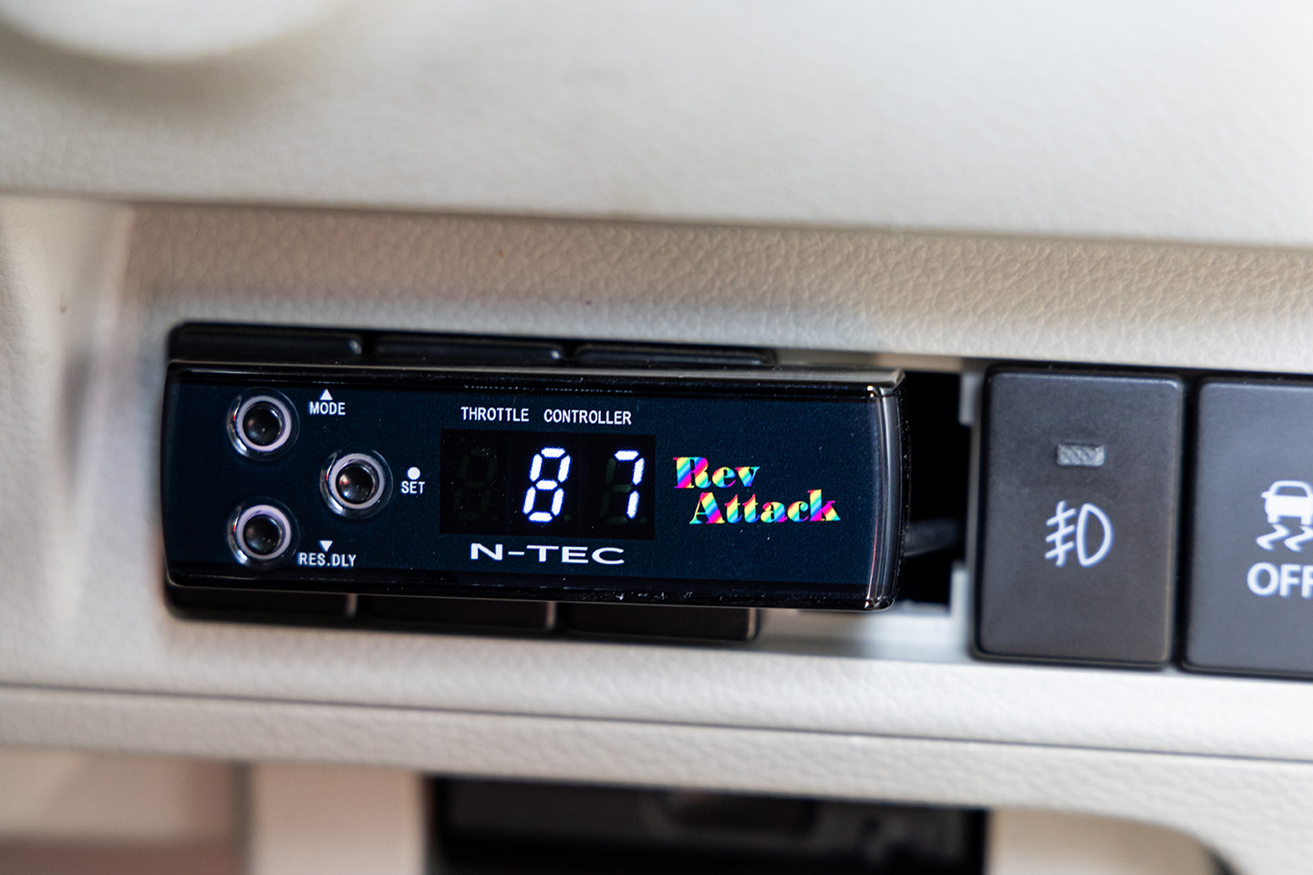 アクセルオフ時に弾けるようなサウンドが特徴のバブリングは、N-TECの「REV ATTACK」にて施工。トヨタ、日産、スズキ、一部のホンダ車などに対応し、費用は5万4000円+取り付け工賃となる。さらにバブリングを導入する場合はECUセッティングが必須で、別途1万5000円の書き換え工賃が発生する。