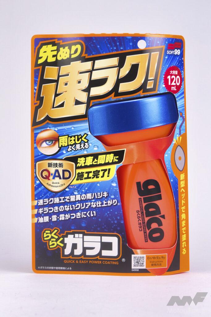 なぜそんなことが可能になったかといえば、『Q−AD( Quick Adhesion&QuickDry』と名付けられた新技術のおかげだ。塗り込みと同時に高速密着成分(QA)と速乾処方(QD)の効果で、すぐに撥水性分がガラス面に密着する。だから、あとは余剰成分をシャンプーで洗い流せばいいというわけだ。