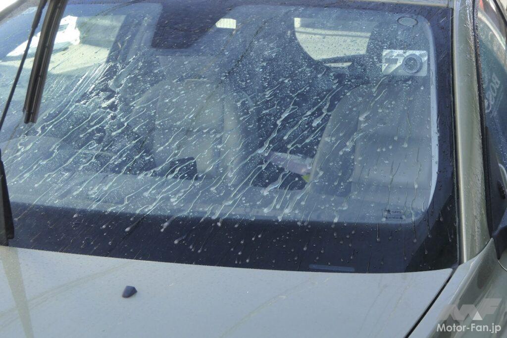 また、この塗り込み→洗車という手順は、仕上がりの向上にも貢献する。従来の塗り込み式ガラス撥水剤は、余剰成分の拭き残しが起こると、それが乱反射を起こしてギラツキの原因になることがあった。しかし、洗車で洗い流せば余剰成分は一掃できるので、ギラツキが起こる心配はほぼなくなるのだ。