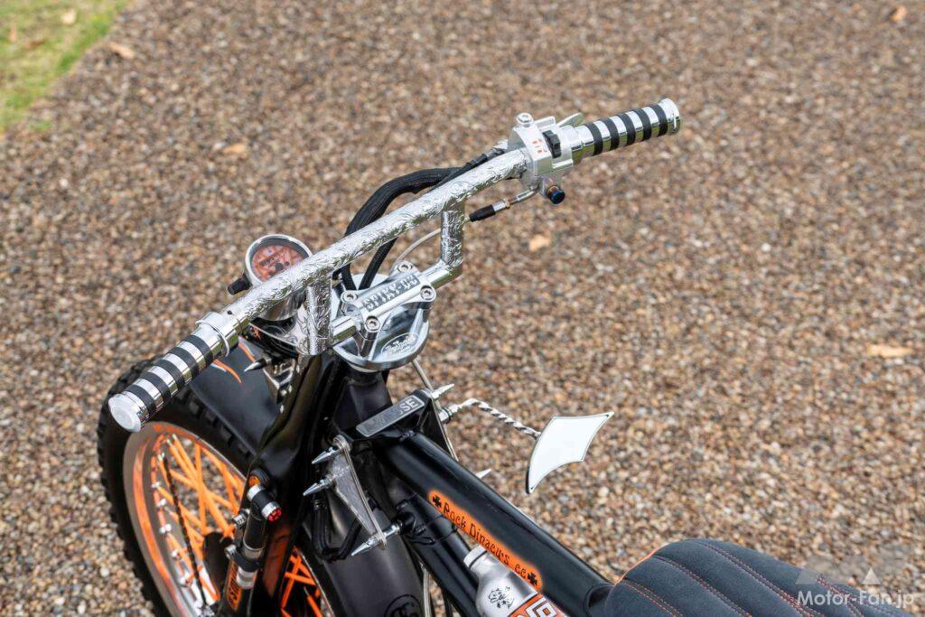 もともとは林道や河川敷を楽しむために本格オフロード仕様にカスタムされていたが、ミーティングイベントに触発されて方向を転換。今回の奈良カブミーティングに向けてハンドルにエングレービング加工を施すなど、徹底して美しさにこだわるカブへと生まれ変わった。