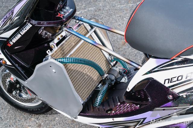 【写真・3枚目】水冷仕様でNSR250用ラジエターも搭載 チタン製ユーロチャンバーも装備するモンスターJOG