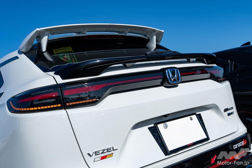 運転しやすいし、燃費も上々ってことでヴェゼルにゾッコンのきよどんさんは根っからのスポーティ志向。そんな経緯もあってホンダのチューニングと言えば“無限”っきゃないでしょーの精神で、フルアエロとマフラーを納車と同時にセットアップ!! DIYが得意な旦那さまの協力も得て、流れるように点灯するシーケンシャルウインカーやアルマイトカラーが際立つ牽引フックなども採り入れている。