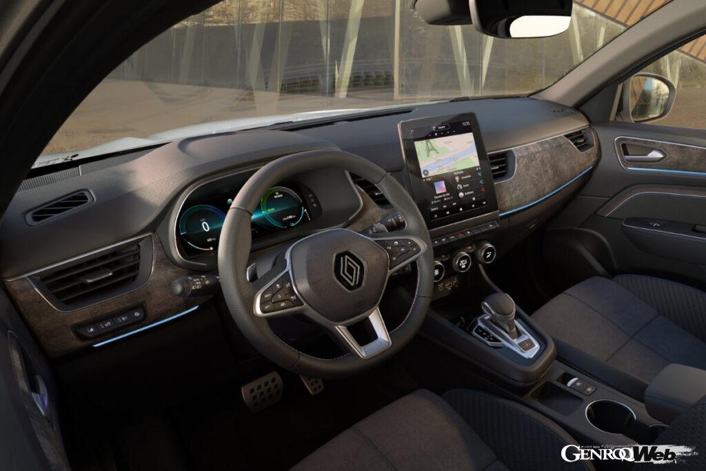 アルカナのインテリアはブルーのアクセントラインが随所に配置され、専用シートにアルピーヌロゴをかたどった刺繍が入るなど「エスプリ アルピーヌ」としての特別感が前面に押し出されている。