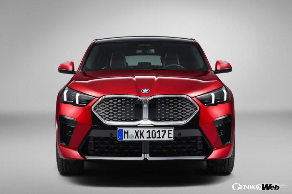 X2はインテリアデザインもX1とおおむね共通だが、2枚のディスプレイを横並びに配置し一体化させたメーターおよびインフォメーションディスプレイは、湾曲して運転者へと向けられる。エアコン操作パネルも運転者の方向を向いており、ドライバーを中心としたクルマであることが伺えるデザインだ。