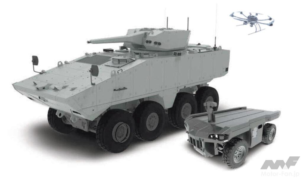 また、本車は無人機(UAVやUGV)との連携能力も特長のひとつだが、それら無人機との連携でもAIが大きな役割を果たしている。単一のインターフェースを通して複数の無人機を管制可能であり、AIが群れの管理や衝突回避、役割の優先付けなどを実行して乗員をサポートする。本車は無人機の“マザーシップ”として機能するわけだ。